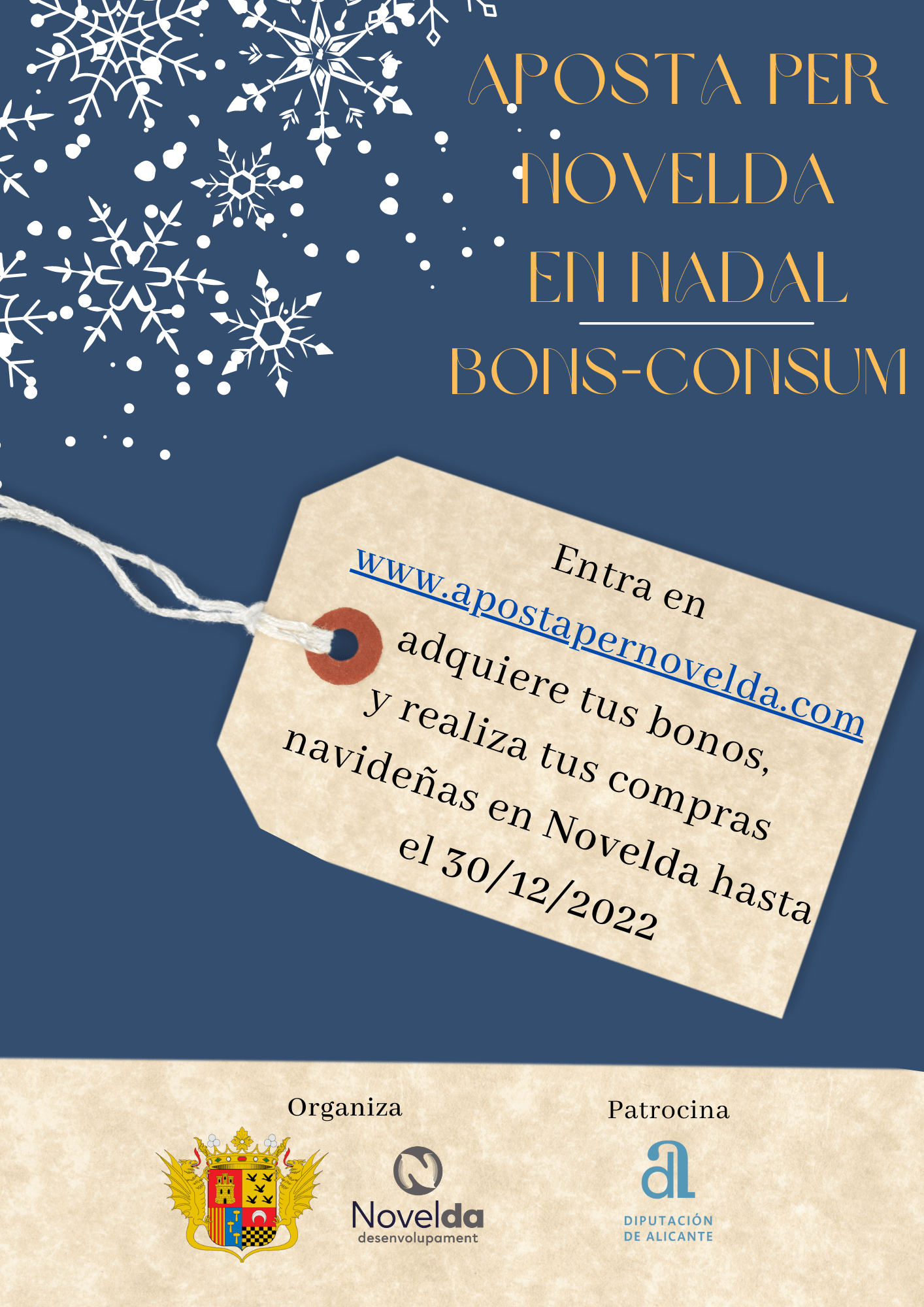 El Ayuntamiento de Novelda pone en marcha, a través de la concejalía de Comercio, Mercado y Consumo, la campaña de “Aposta per Novelda en Nadal”, una iniciativa comercial financiada por la Diputación Provincial de Alicante que destina 133.351 euros a subvencionar, al cincuenta por ciento, las compras realizadas con bonos consumo en los establecimientos locales adheridos, con el objetivo de reactivar la economía y potenciar el consumo en la ciudad.