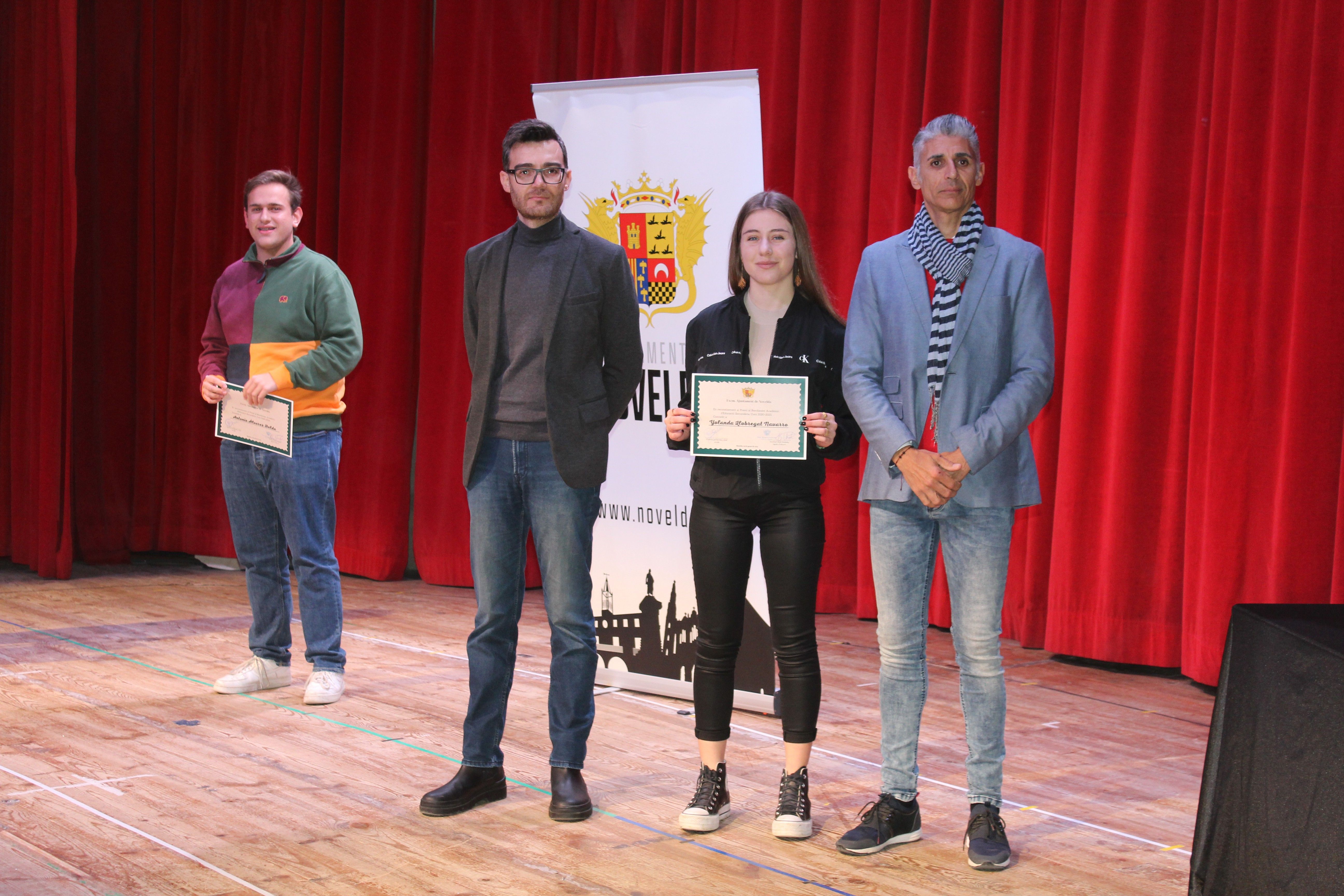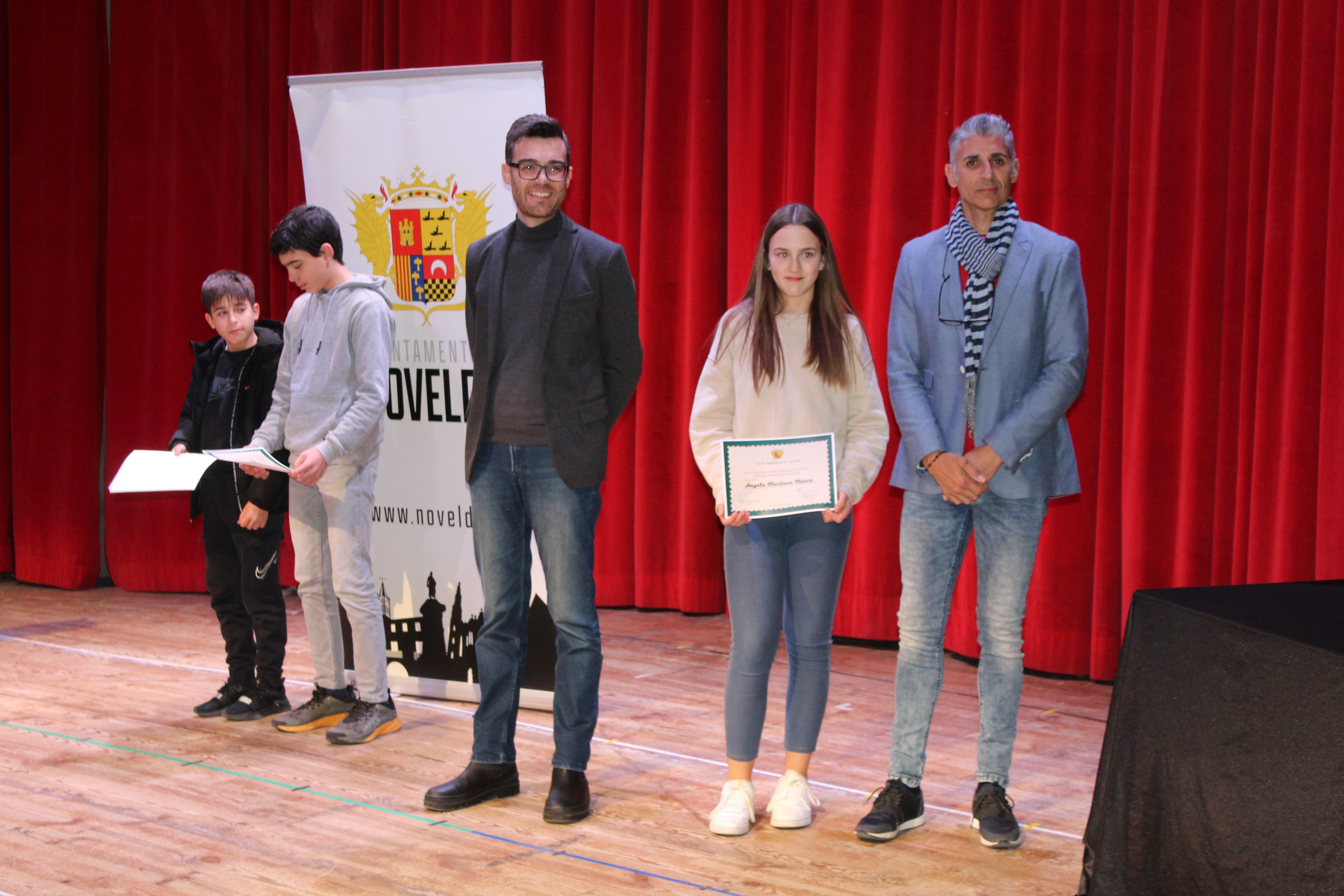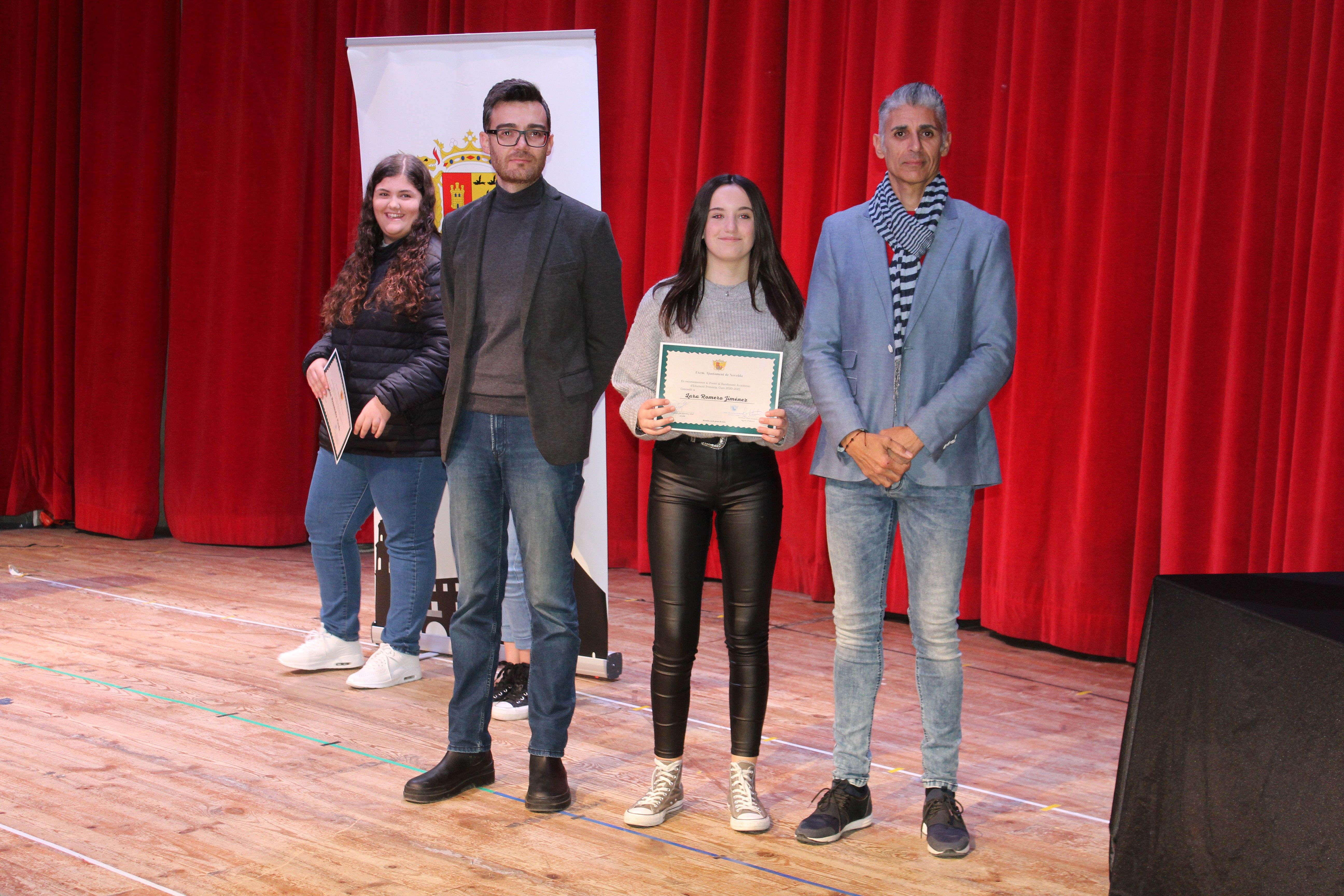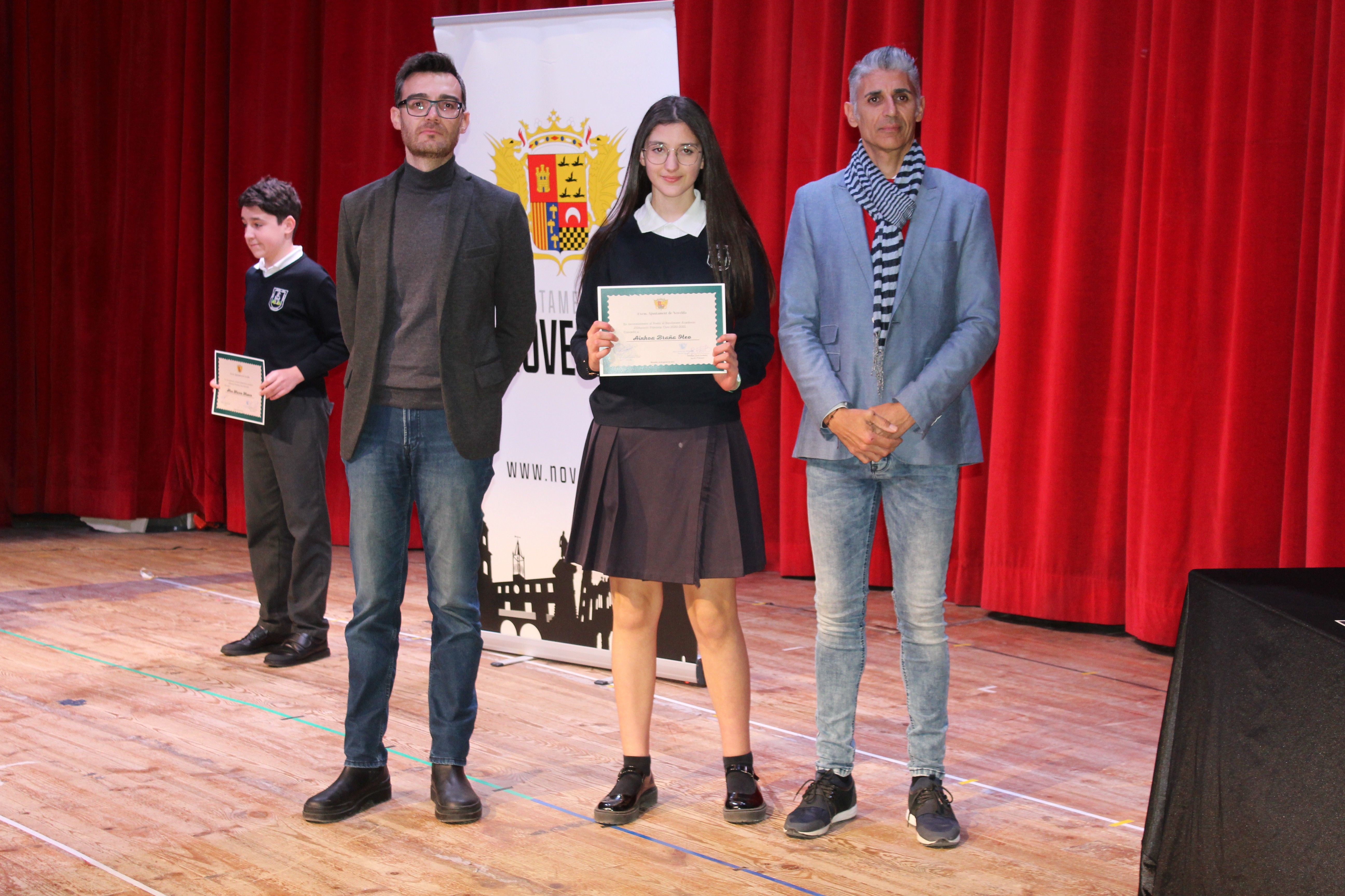 El Auditorio del Centro Cívico ha acogido el acto de entrega de los diplomas de reconocimiento por parte del Ayuntamiento de Novelda al alumnado distinguido con el premio al Rendimiento Académico concedido en los cursos 2020/2021 y 2021/2022 por la Conselleria de Educación, un acto en el que se ha reconocido públicamente a los cuarenta y tres alumnos noveldenses, treinta y uno de Educación Primaria y doce de Secundaria, destacados por la Generalitat Valenciana en los dos últimos curso académicos