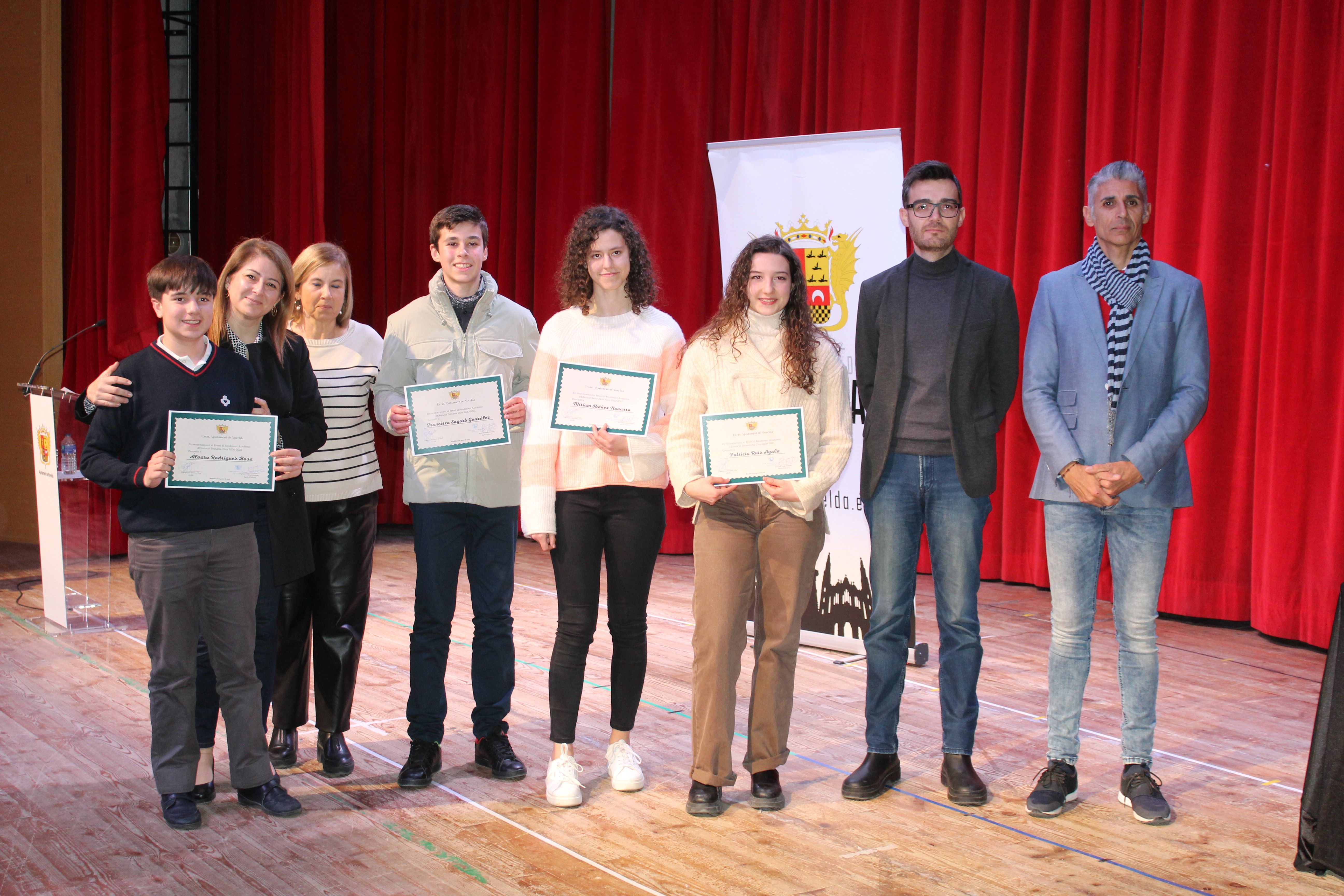 Los alumnos que han obtenido el Premio al Rendimiento Académico en los cursos 2020/2021 y 2021/2022 en Educación Primaria han sido: Alejandro Botella Estrada, Kike Linares Peris y Ángela Martínez Marco del CEIP Alfonso X el Sabio; Álex Blasco Blanco, Ainhoa Braña Oteo, María Tormo Navarro y Marcos Zambrana Sala del colegio San José de Cluny; María Mehadjbia del CEIP Gómez Navarro; Miquel Fernández Esteban y Arantxa Villar Forniés del CEIP Jesús Navarro Jover; Virginia Ayala Becerra, Ana Fernández Puche y Lara Romero Jiménez, Javier Chacón Sarrión, Ariadna Blasco Sánchez y Candela Díaz Crespo del CEIP Jorge Juan; Martín Beltrá Castillo, Sofía Sabater Palazón, Hugo Escudero Ortega, Aynara Ortiz Ruiz y Ángela Sánchez Soria del colegio Oratorio Festivo; Clara Abad Sabater, Álvaro Rodríguez Bosa y Francisco Sogorb González del colegio Padre Dehón; Héctor Botella Montes, Lucía Bravo González, Ana Mira Alvarado, Mario Botella García, Adrián Gimeno Rodríguez y Jessenia López López del CEIP Sánchez Albornoz y David Gómez Berenguer, Fernando Navarro Amorós, Elena Pacheco del Rey y Lucia Torres Moll del colegio Santa María Magdalena.