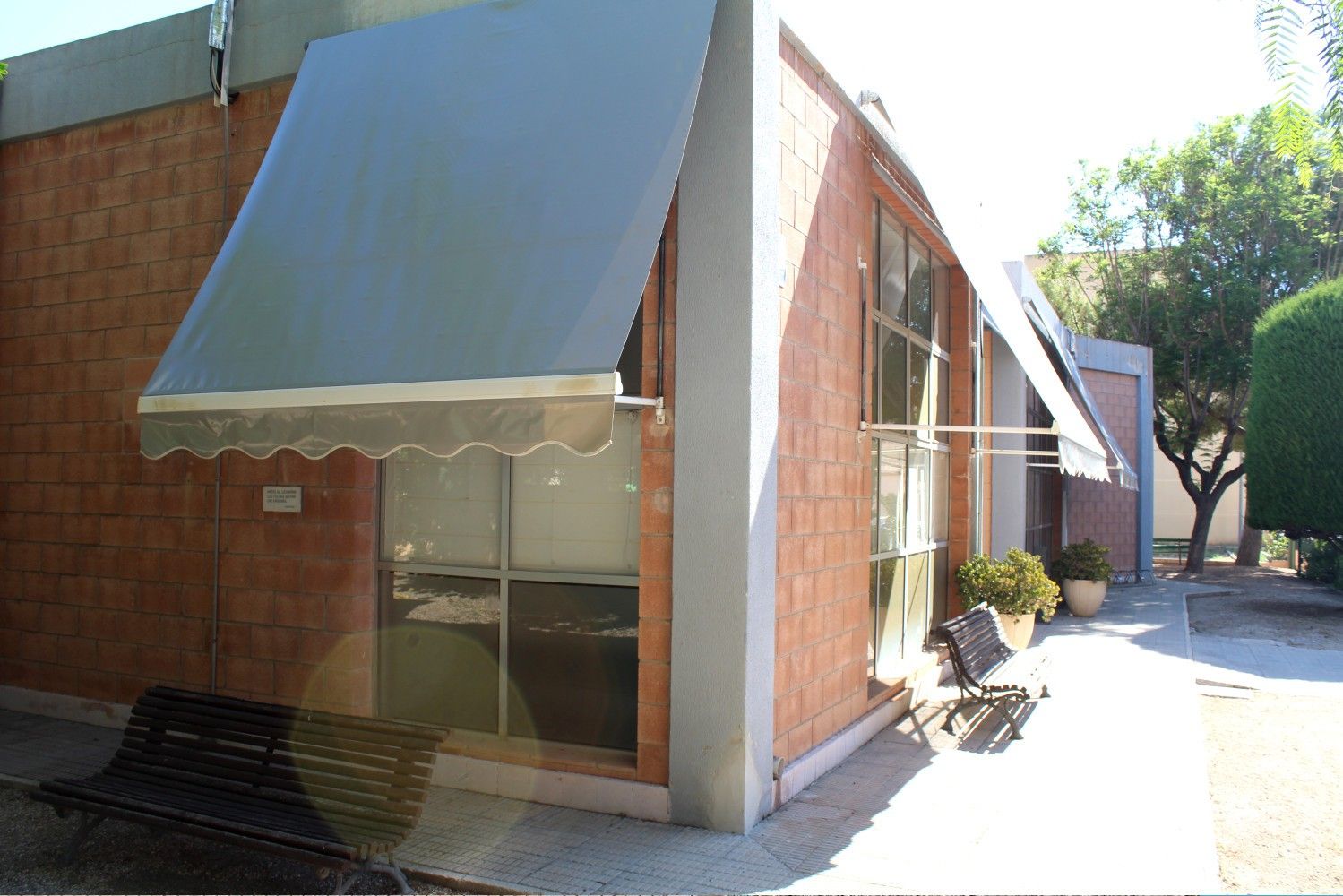 La actuación,con un presupuesto de 2.854’34€, se ha centrado en la sustitución de las lonas de los toldos exteriores del edificio y en trabajos de adecuación y mejora en el muro y valla del recinto.