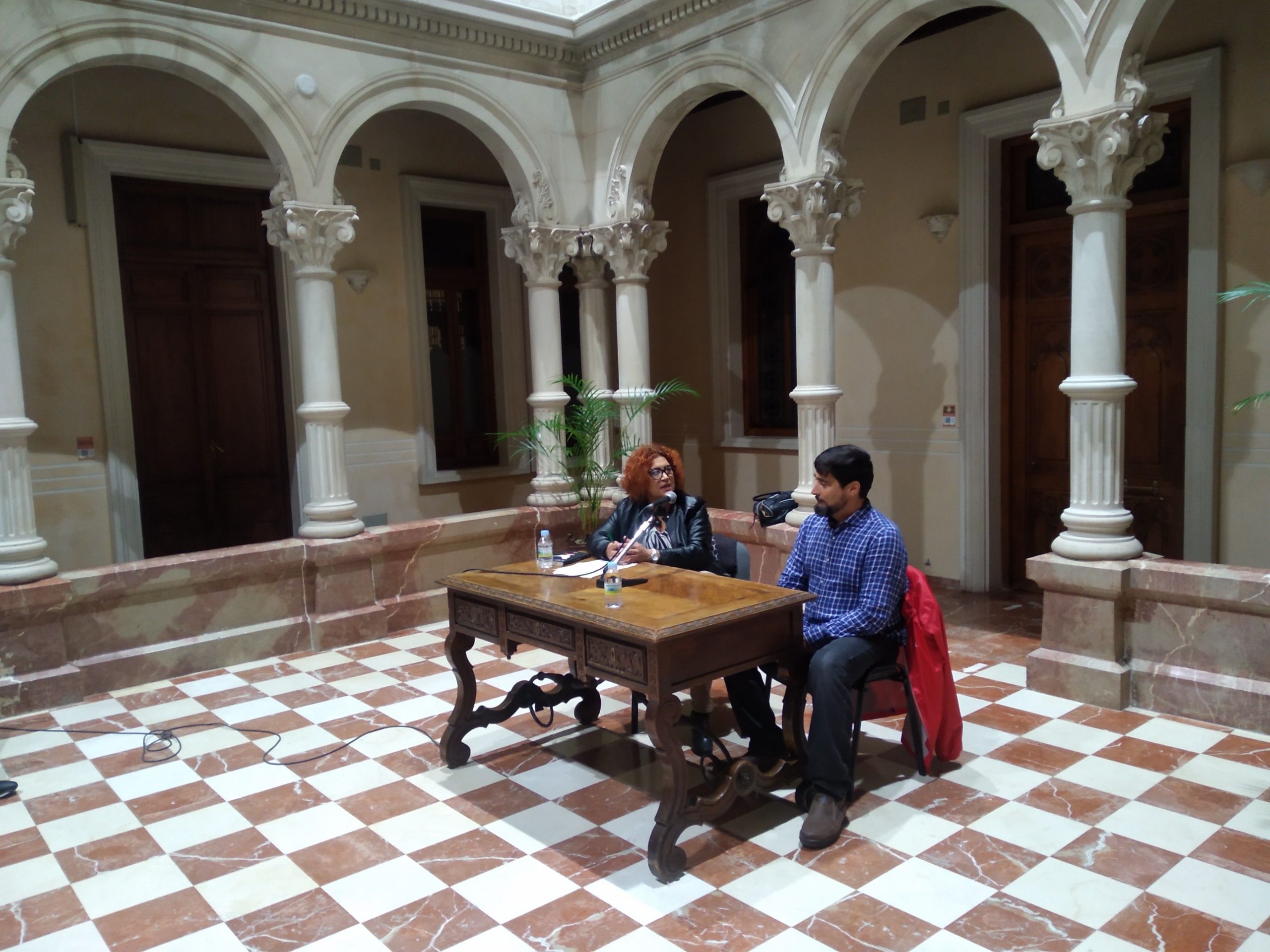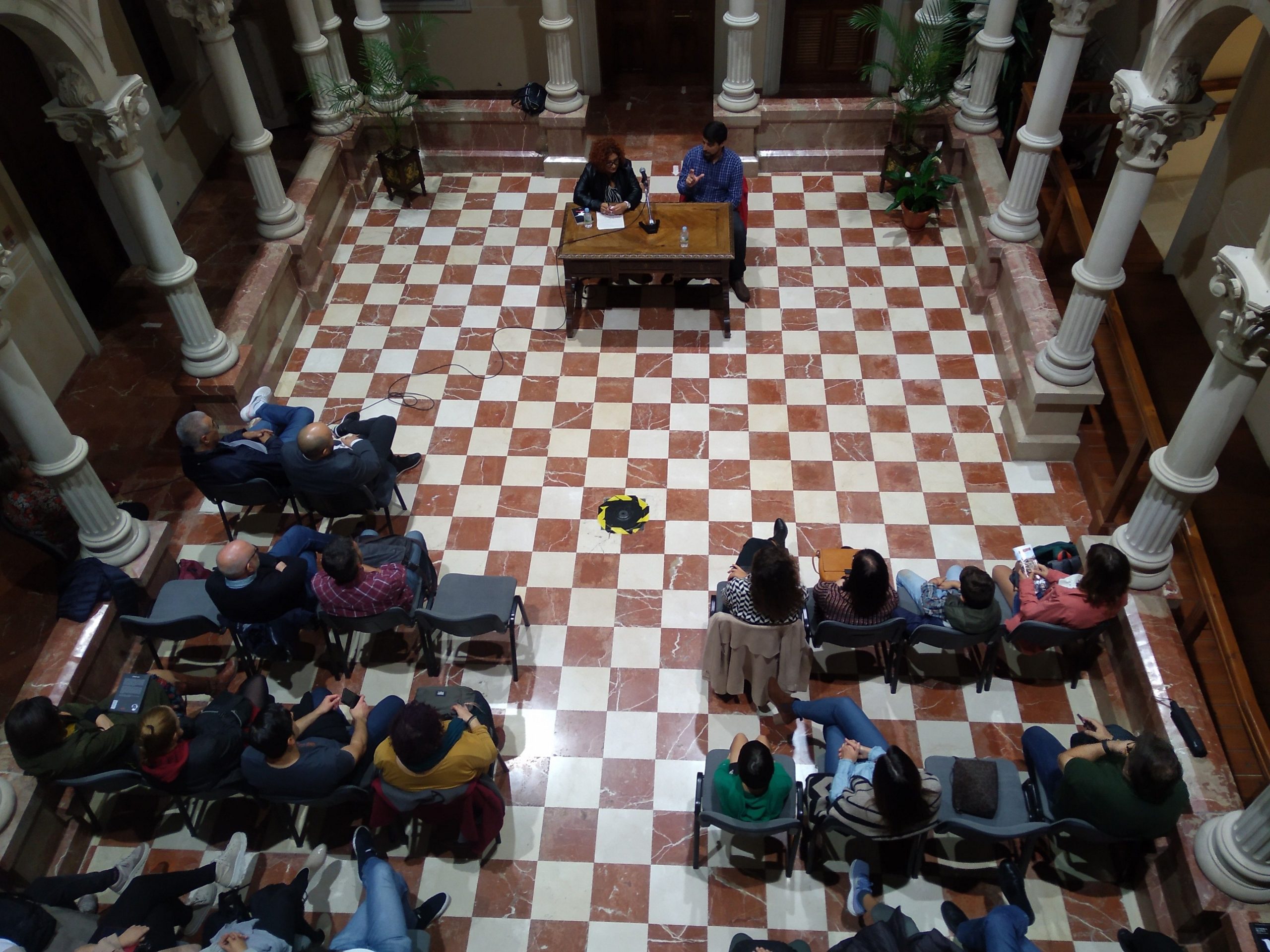 Después de la intervención de Manolo Gil, director de Vínculo Editorial, la filóloga Ascen Alted entrevistó el autor para desentrañar las características de una novela negra ambientada en la ciudad de Alicante y localidades próximas. Carreras ilegales, drogas, corrupción política y apuestas son el fondo, “sin recrearse en la sordidez”, según apuntó Alted, de la investigación policial de Arnau Feliu sobre unas muertes, aparentemente accidentales e inconexas.