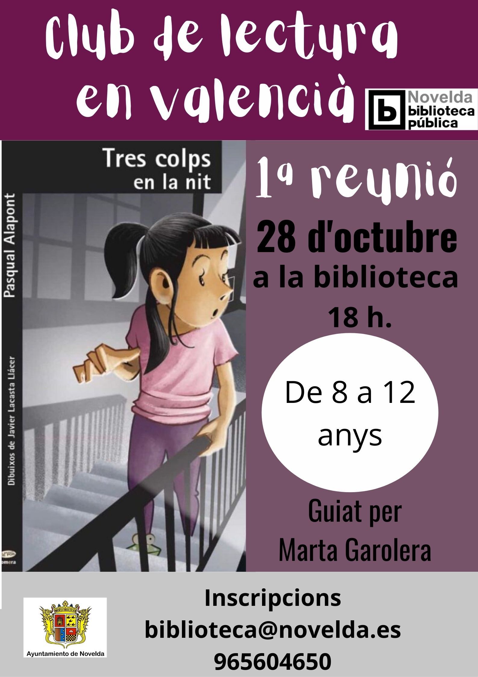 Las inscripciones para los clubs de lectura de la Biblioteca Municipal se pueden formalizar en el correo electrónico biblioteca@novelda.es o en el teléfono 965 60 46 90