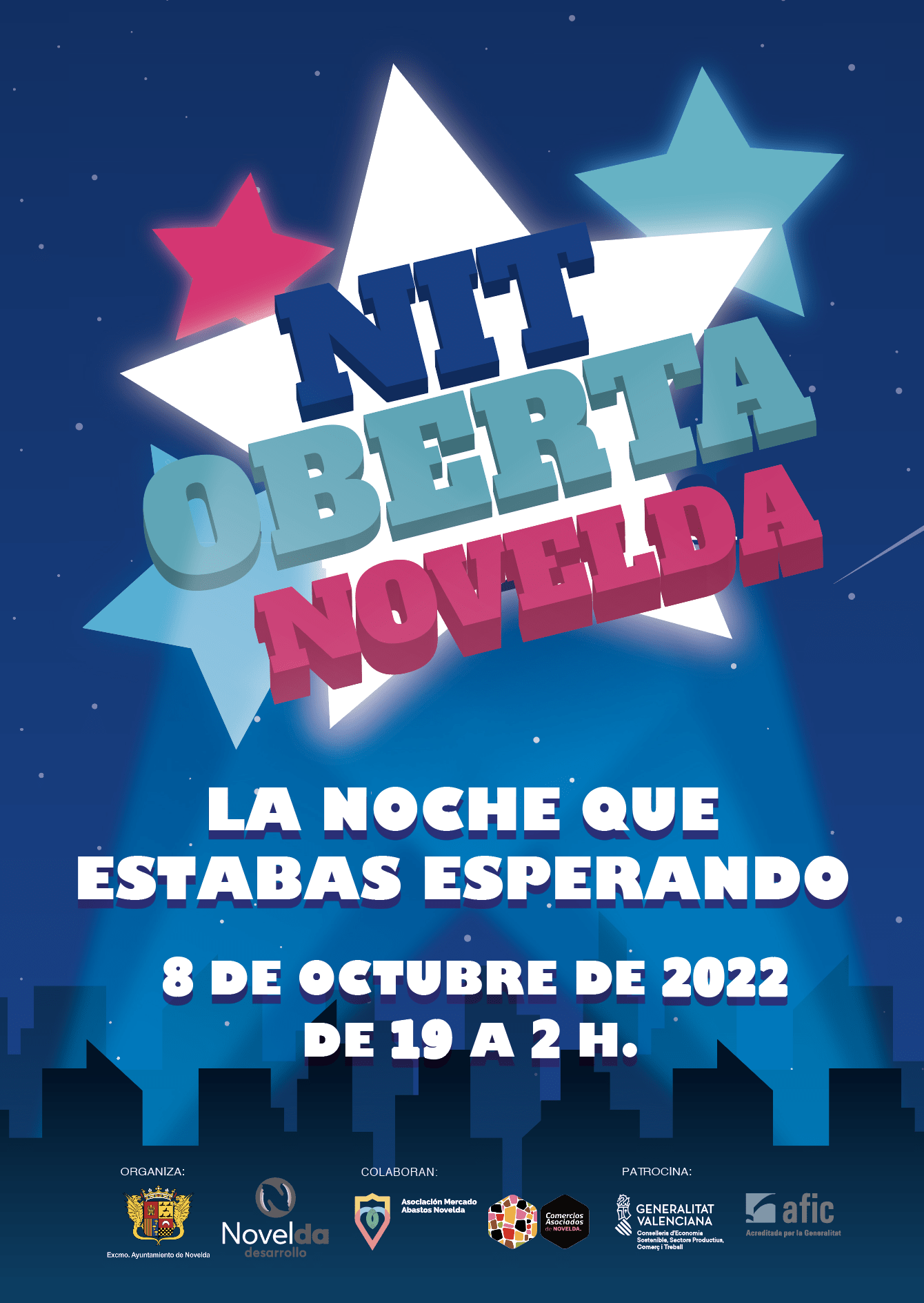 La concejalía de Comercio, Consumo y Mercado, en colaboración con Comercios Asociados de Novelda y la Asociación Mercado de Abastos, ha presentado una nueva edición de la Nit Oberta, una actividad que se desarrollará el próximo sábado, 8 de octubre, desde las siete de la tarde a las dos de la madrugada, con el objetivo de dinamizar y promover el potencial comercial y hostelero de la ciudad.