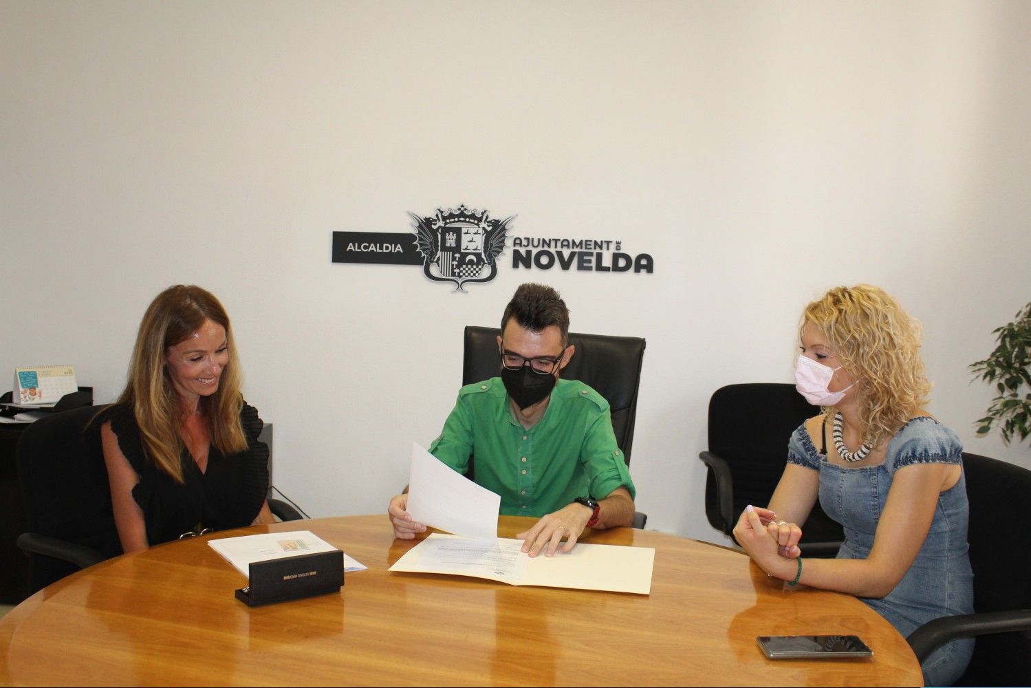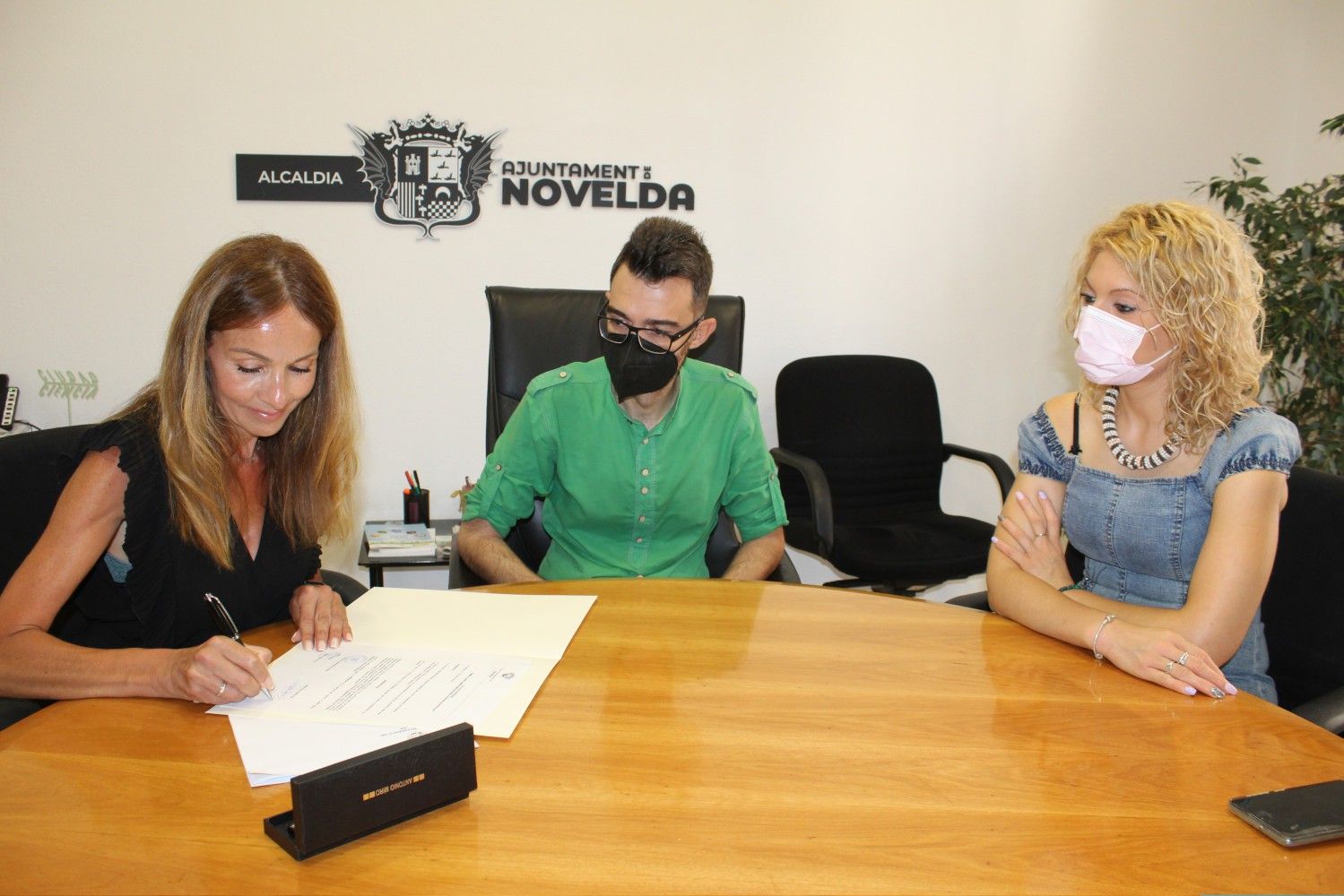El despacho de alcaldía ha sido el escenario de la firma del documento por el que los descendientes de Vicente Díez Clemente, autor de la música del himno de la patrona de Novelda, Santa María Magdalena, donan a la ciudad la partitura original de un himno que se estrenó el 22 de julio de 1930 en la Parroquia de San Pedro.