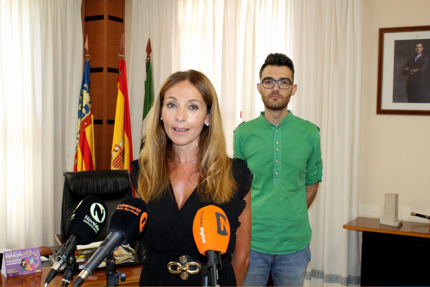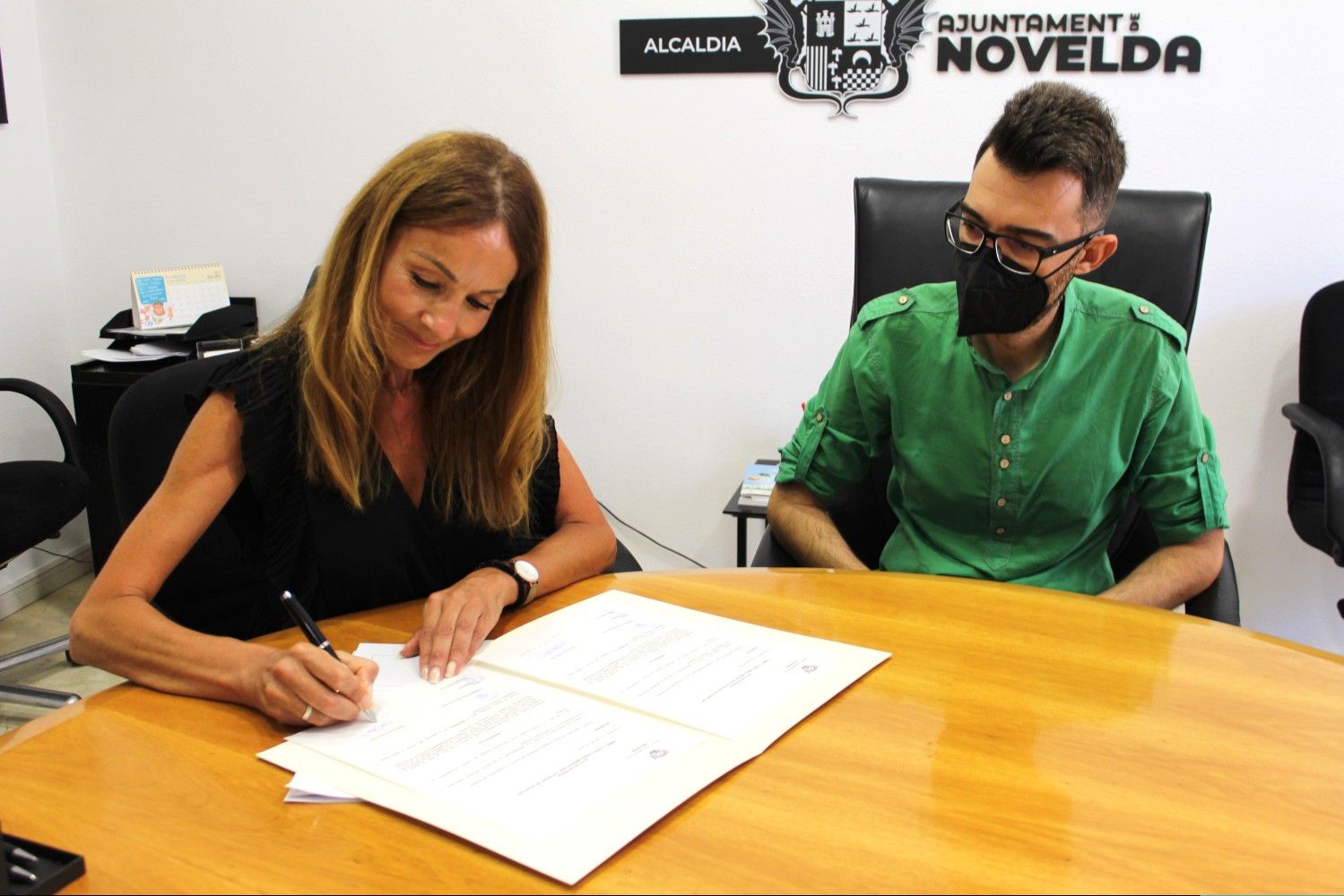 El alcalde de Novelda, Fran Martínez, y Eva Quiles, en representación de la familia, han firmado el documento protocolario de la donación de la partitura original del himno a Santa María Magdalena que los descendientes de su autor, Vicente Díez Clemente, han realizado al pueblo de Novelda.