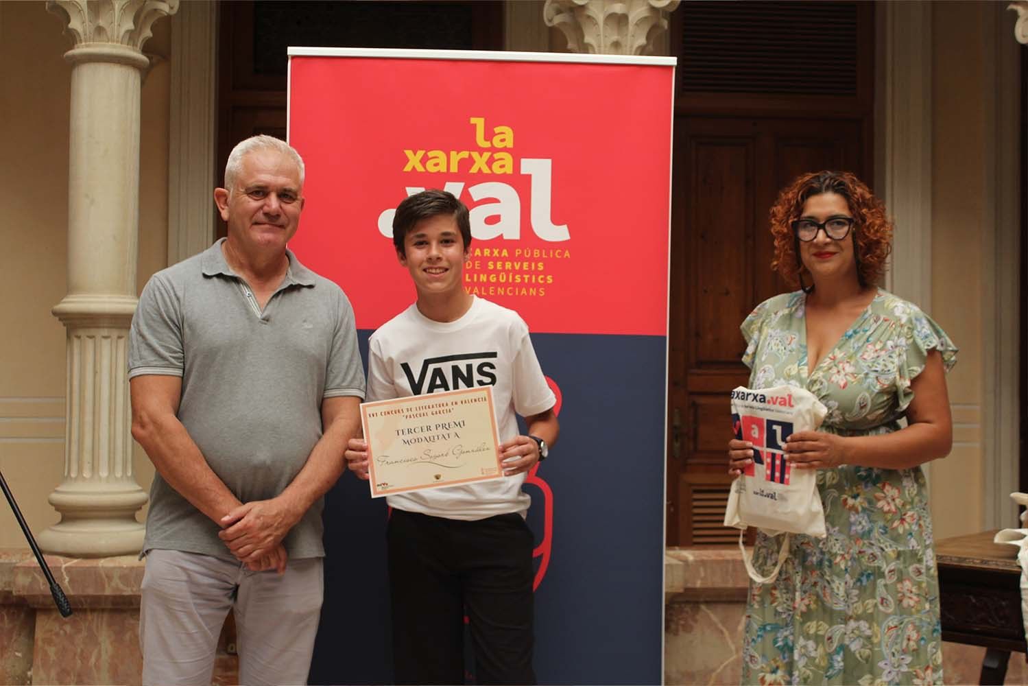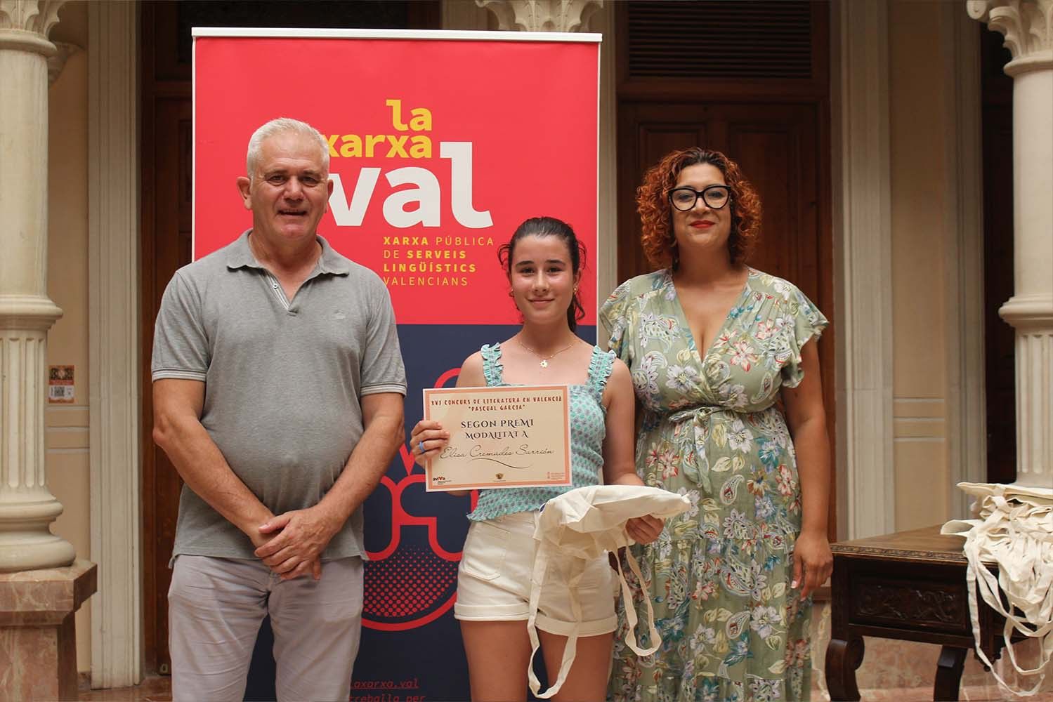 Manel Alted Sánchez, estudiante de 1º de la ESO del IES Vinalopó, Eneas Tevar Valero, de 3º de ESO del IES La Mola, y Miriam Ibáñez Navarro, de 2º de Bachillerato del CC Padre Dehon, han sido los ganadores de esta nueva edición del Concurso Escolar de Literatura en Valencià “Pascual García”.