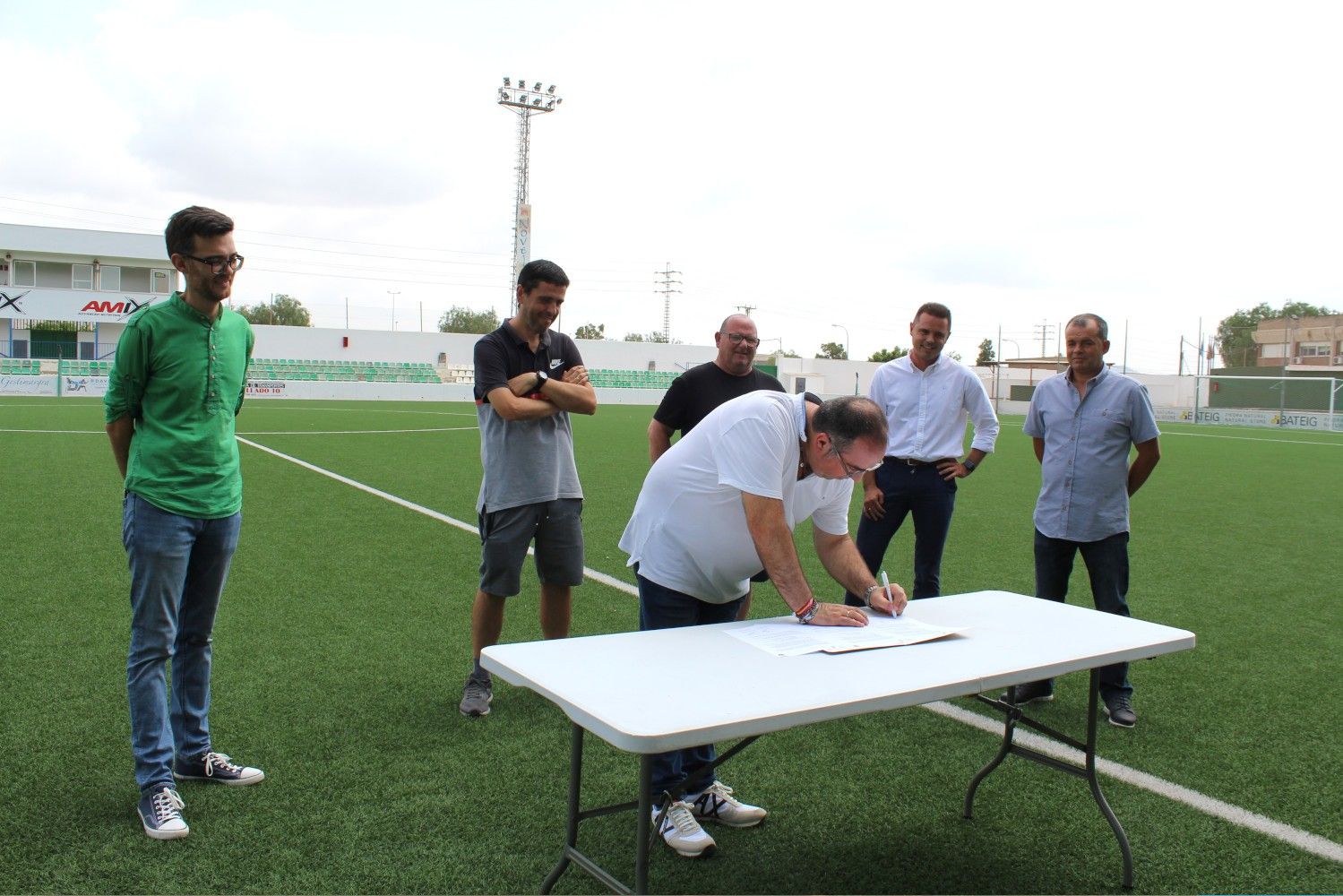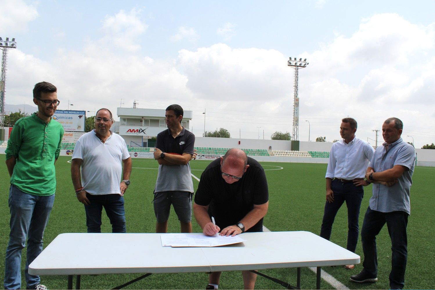 El Campo Municipal de La Magdalena ha acogido la firma protocolaria del acuerdo para la creación del Novelda Unión C.F., nuevo club deportivo de fútbol y fútbol sala que nace tras la fusión del Racing de Novelda y el Novelda U.D.
