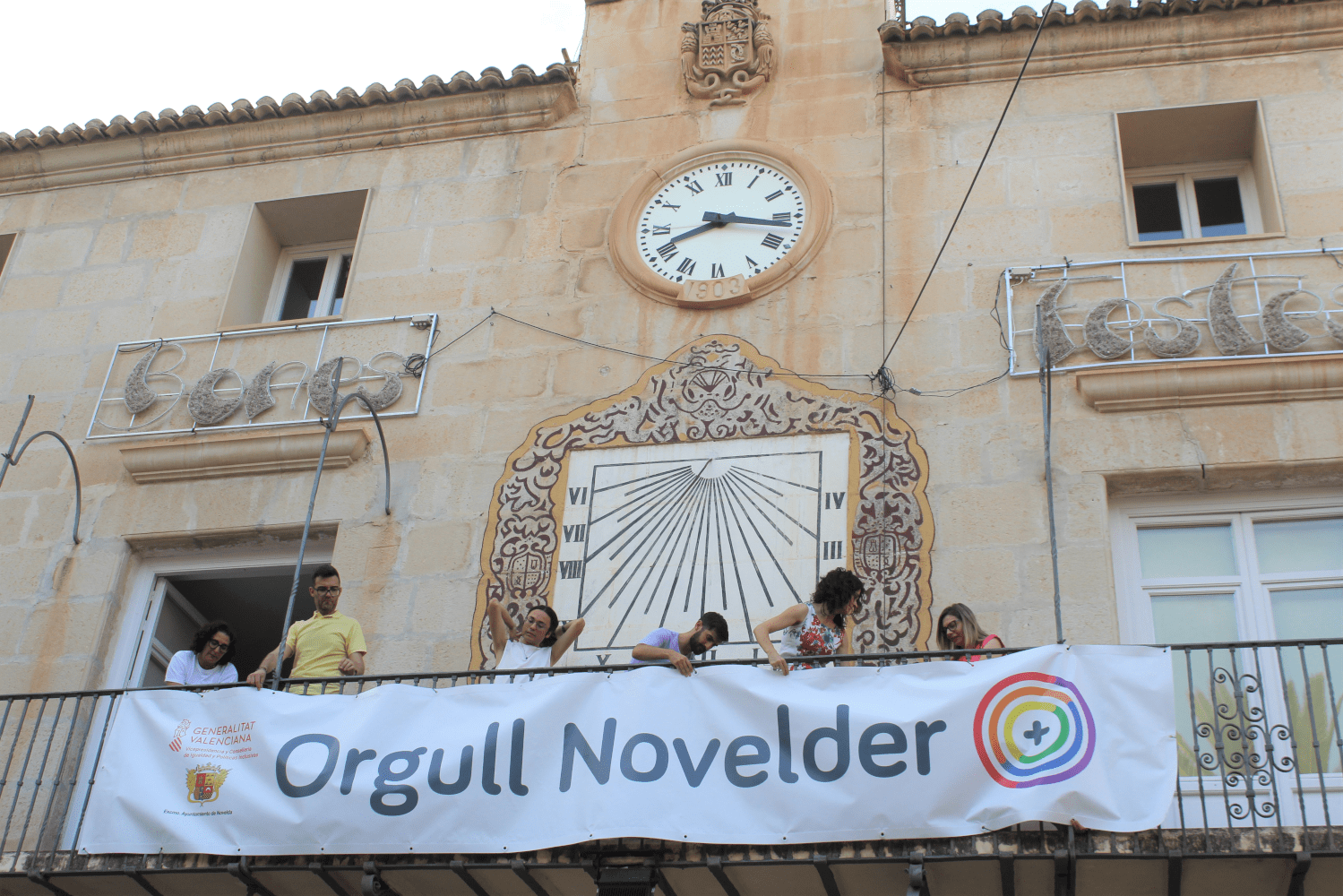 Con el despliegue de la pancarta conmemorativa en los balcones del Ayuntamiento a ritmo de batukada y con mensajes en defensa de los derechos del colectivo LGTBIQ+ Novelda se ha sumado a la celebración del Día del Orgullo, una jornada en la que tanto desde la concejalía de Igualdad como desde la Asociación LGTBIQ+ se ha reivindicado una “sociedad libre, tolerante e igualitaria” frente a los “discursos del odio”.
