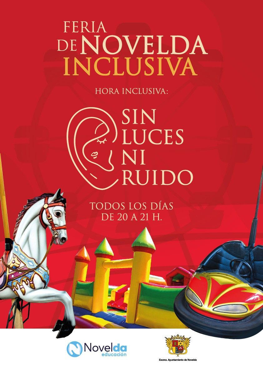 La concejalía de Educación y Fiestas, en coordinación con los feriantes, ha puesto en marcha la Feria de Novelda Inclusiva, una iniciativa en la que las atracciones del recinto ferial funcionaran, entre las 20:00h y las 21:00h, sin estímulos sonoros ni visuales con el fin de que los niños con Trastorno del Espectro Autista (TEA), particularidades auditivas y problemas sensoriales puedan disfrutar de las instalaciones.