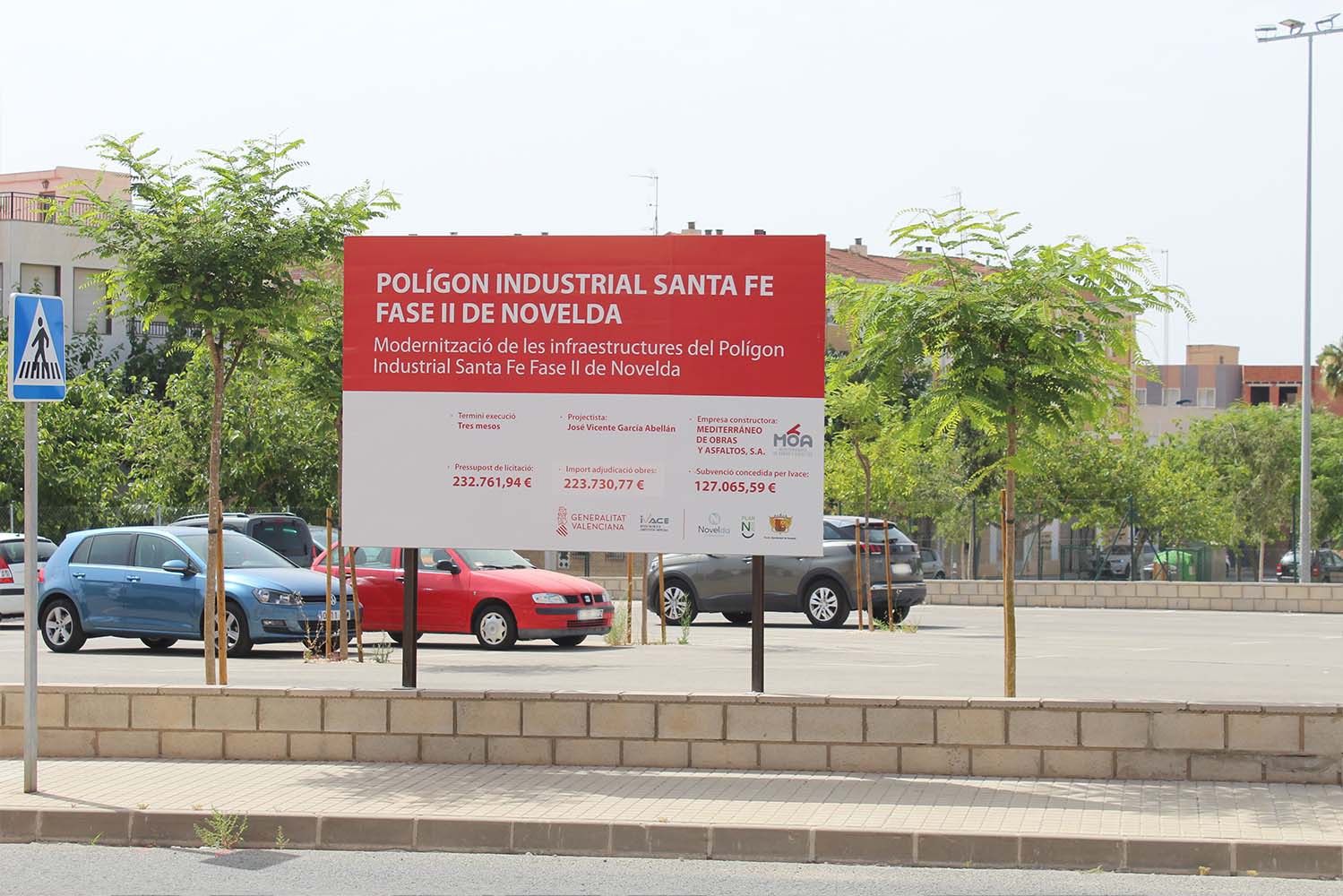 El Ayuntamiento de Novelda ha iniciado, con la firma del acta de replanteo, las obras de la segunda fase de mejora y modernización del polígono de Santa Fe, una intervención que pretende mejorar la accesibilidad, eficiencia y calidad de la infraestructura para convertirla en una zona tractora de empresas que, a su vez, esté integrada en la ciudad.