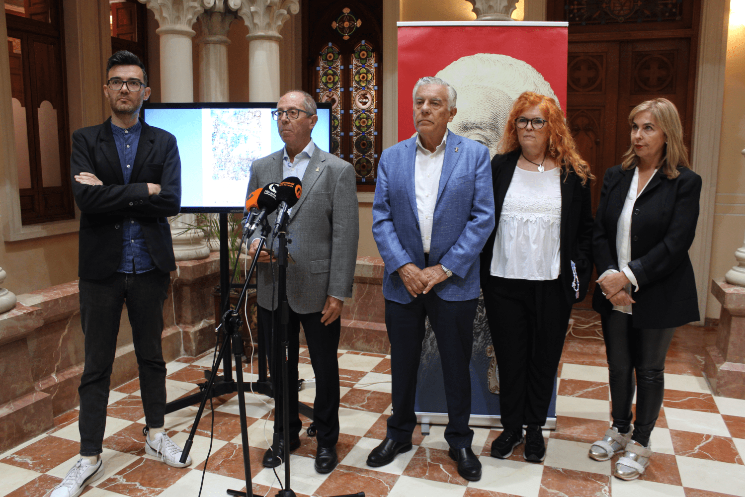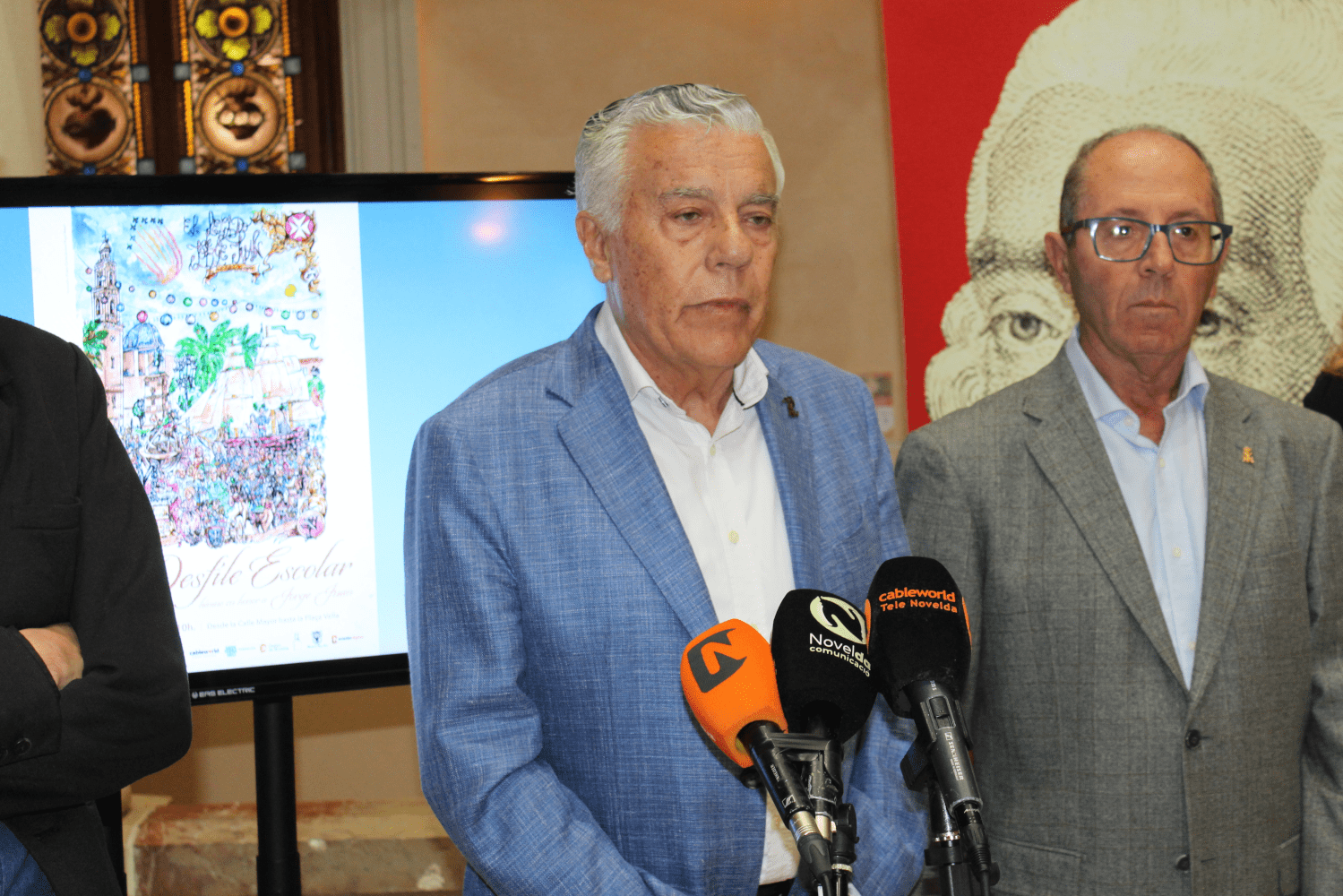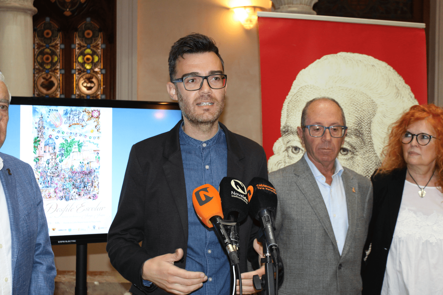 El presidente de la comisión organizadora de los actos del 250 aniversario de la muerte de Jorge Juan, José Francisco Boyer, junto a Mario Miralles, Graciela Luz y Merche Navarro, como miembros de la misma, y el alcalde de Novelda, Fran Martínez, han presentado el evento que el próximo 30 de mayo reunirá a más de mil alumnos y alumnas de los diferentes centros educativos noveldenses para dar cuerpo al que se espera que sea el desfile infantil más numeroso reunido nunca para rendir homenaje a Jorge Juan y Santacilia, cuando se cumplen 250 años de su muerte, en un evento que concluirá con la interpretación conjunta del himno compuesto por José Ramón Gómis y Luis Calpena y estrenado en 1913.