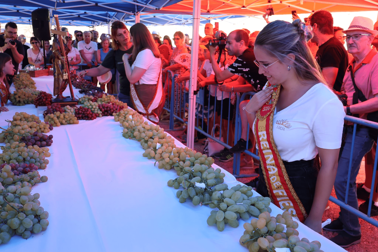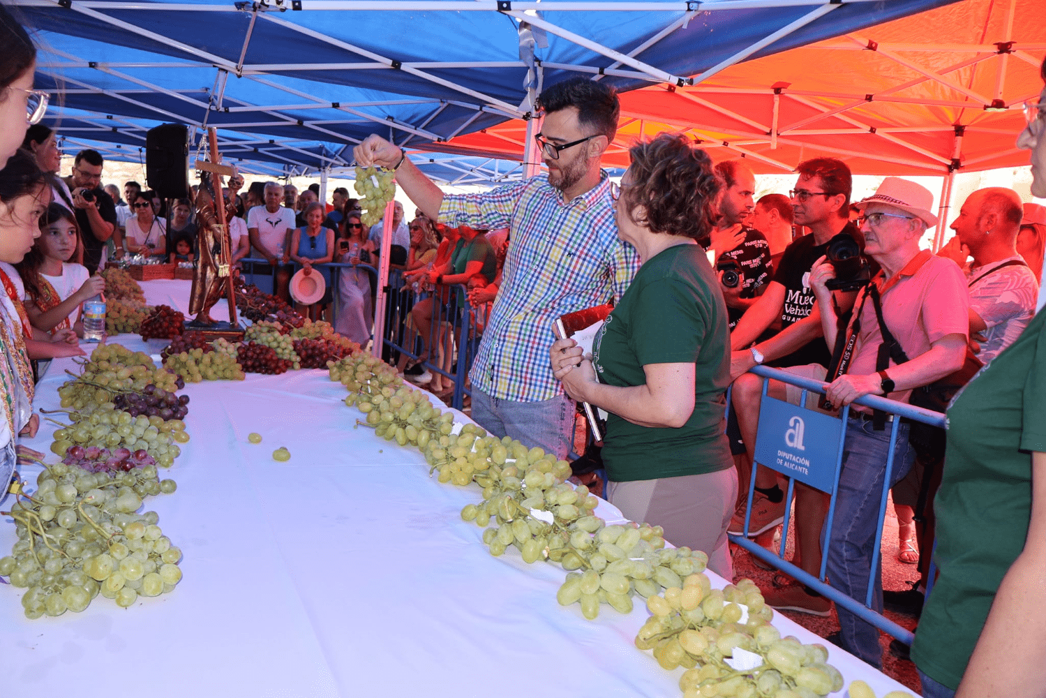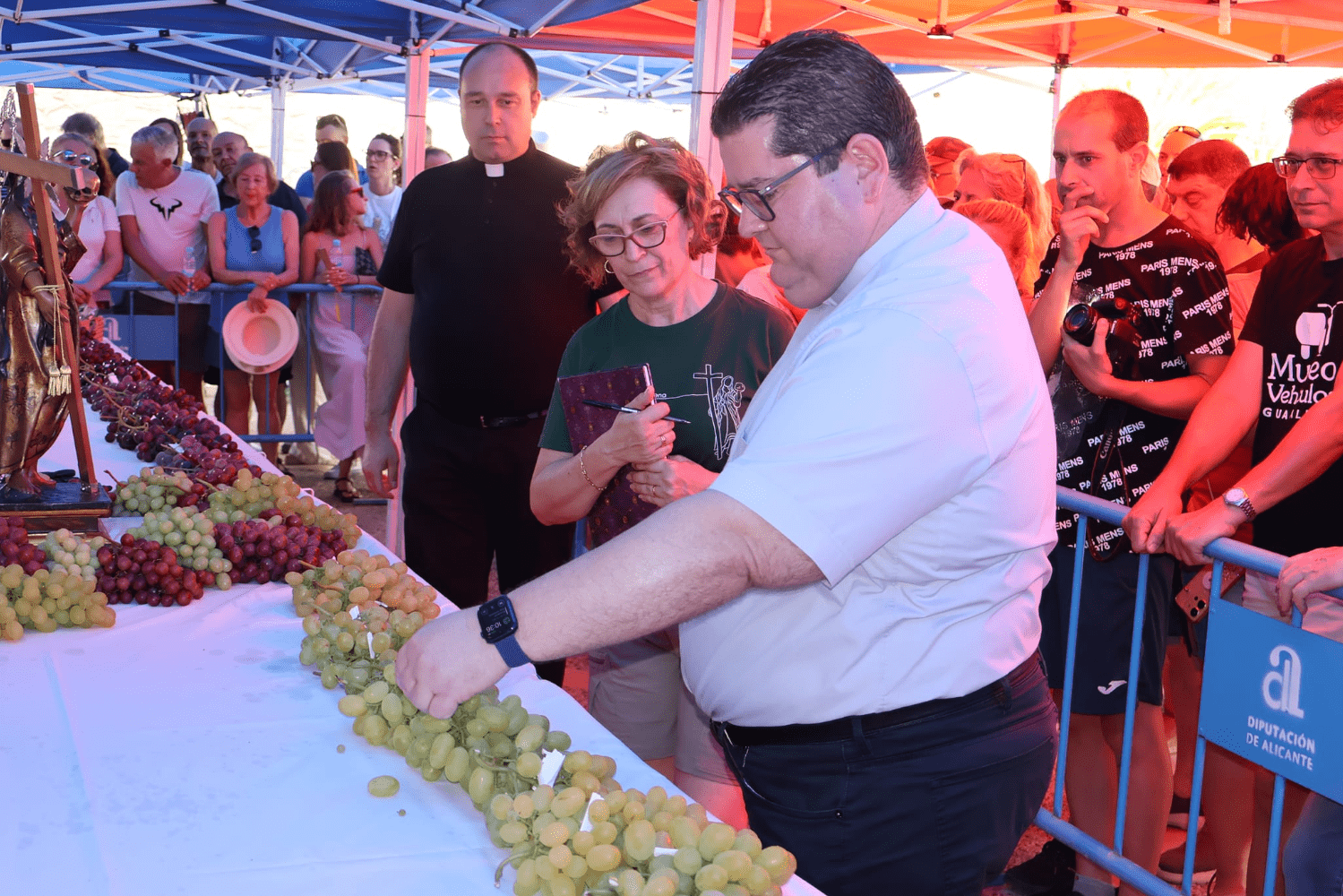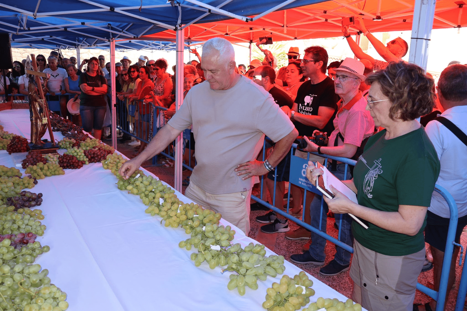 Cerca de medio centenar de racimos, presentados por los agricultores de la localidad, han participado en un acto, amenizado por la colla de dolçainers i tabaleters de Novelda La Xaramita Cana, prólogo de la tradicional romería de bajada de la Santa.