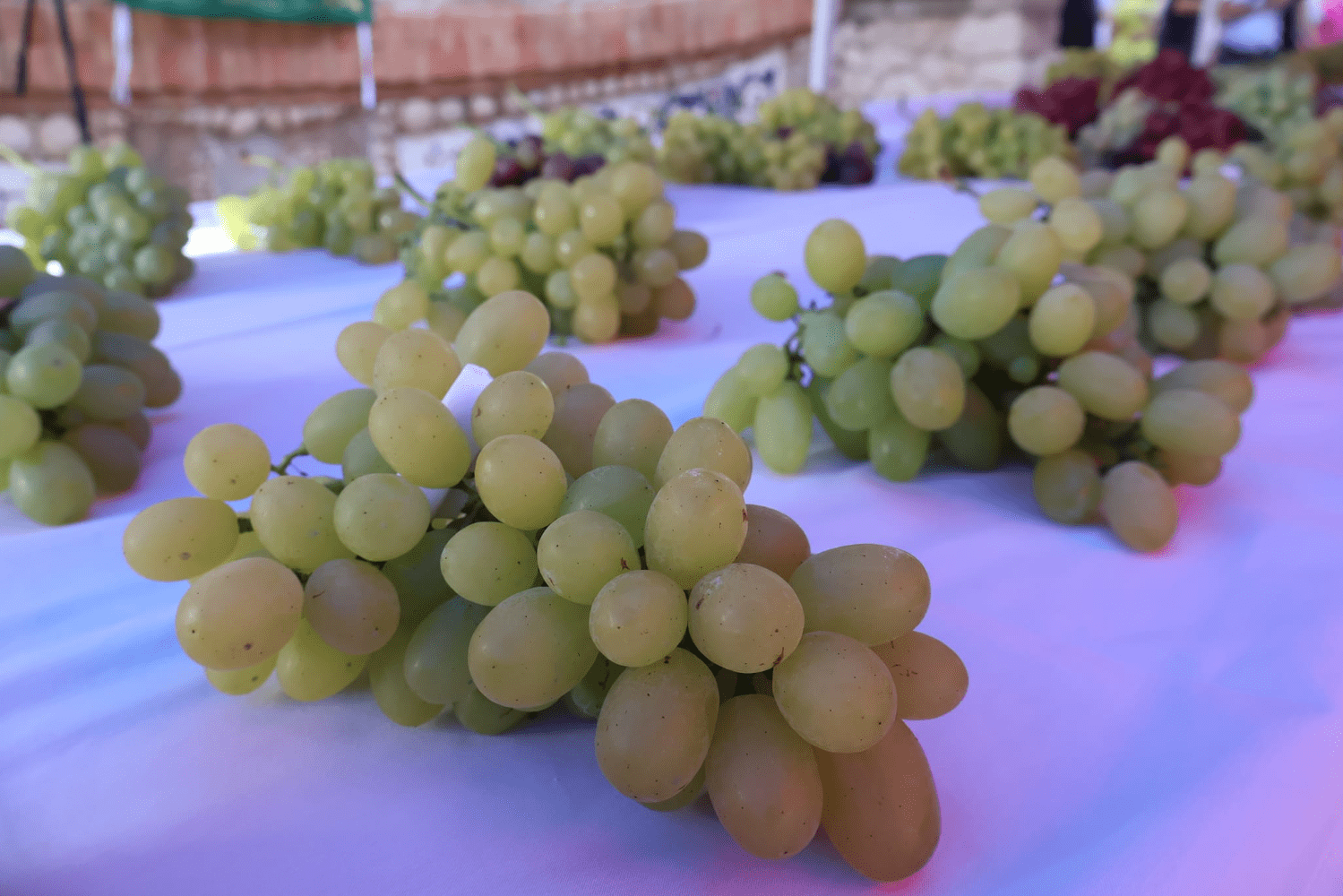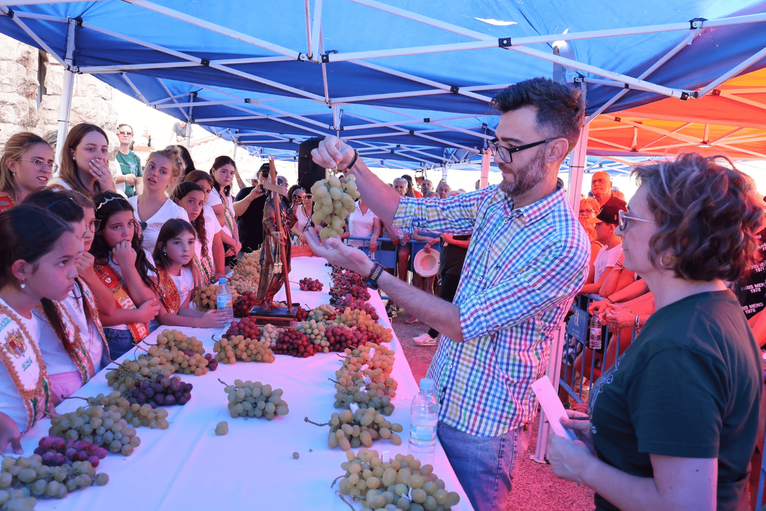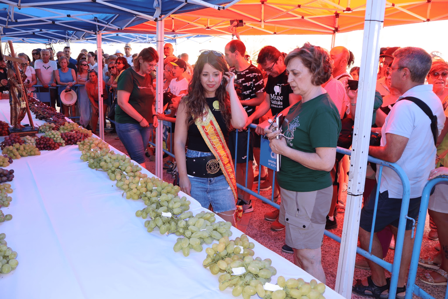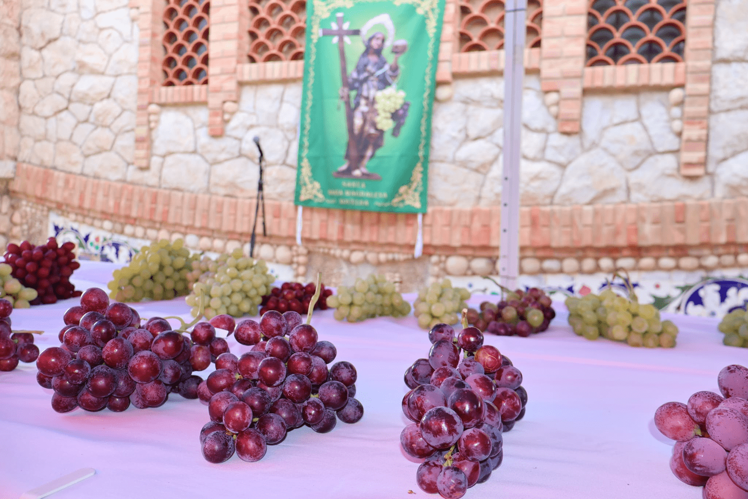 Cerca de medio centenar de racimos, presentados por los agricultores de la localidad, han participado en un acto, amenizado por la colla de dolçainers i tabaleters de Novelda La Xaramita Cana, prólogo de la tradicional romería de bajada de la Santa.