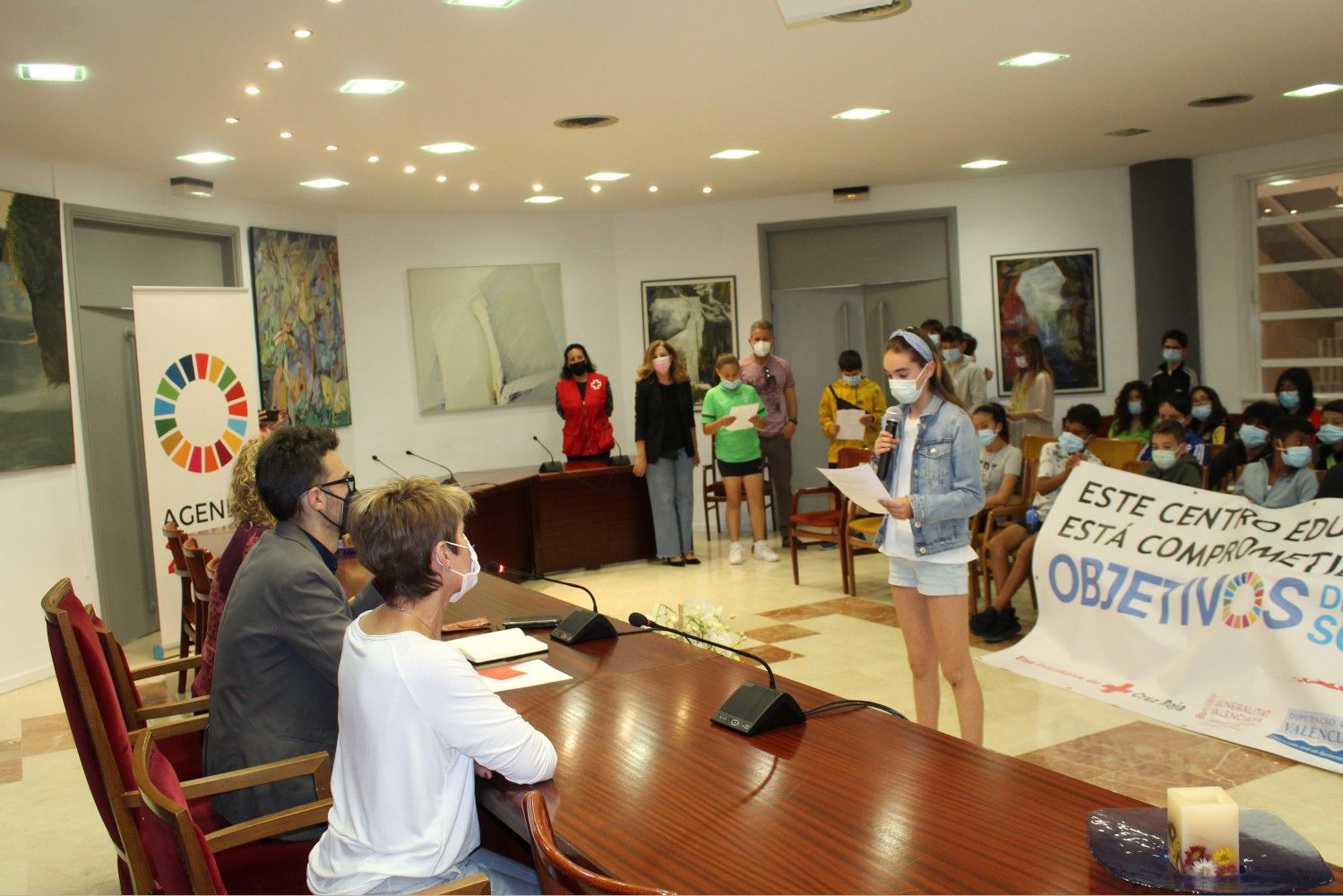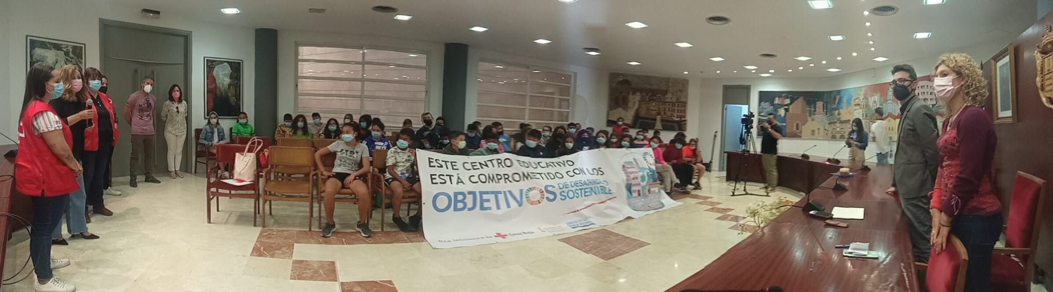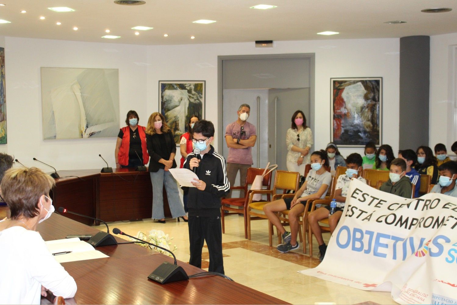 Alumnado del CEIP Jorge Juan ha presentado al alcalde sus propuestas para conseguir una ciudad más inclusiva, segura, resiliente y sostenible, propuestas que son el resultado del trabajo desarrollado durante el curso, coordinado por Cruz Roja, sobre el Objetivo de Desarrollo Sostenible número 11 de la Agenda 2030 de Naciones Unidas.