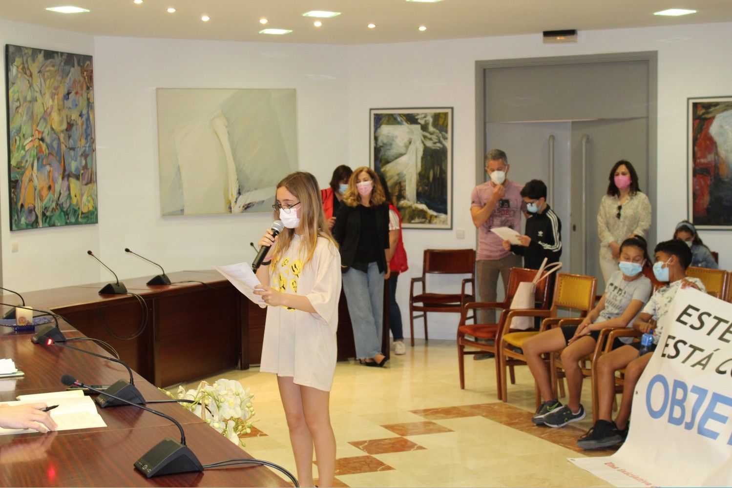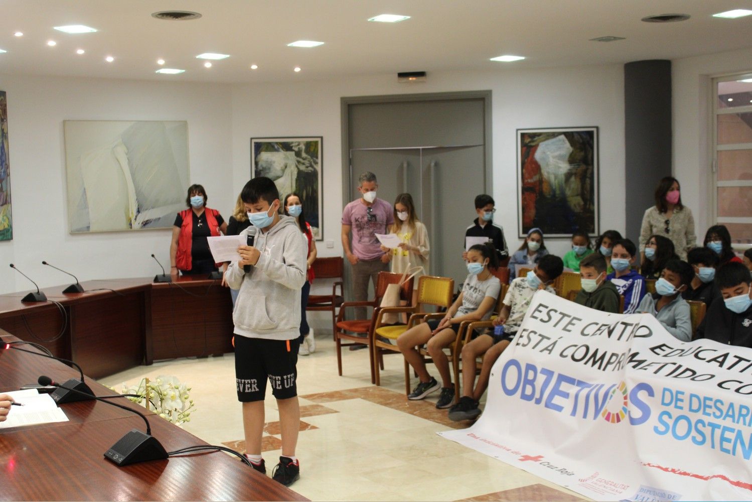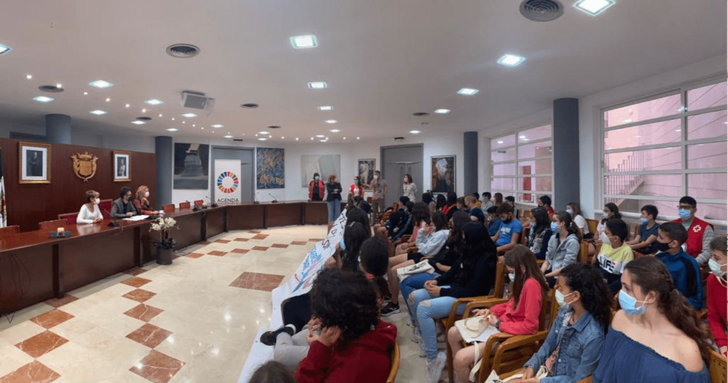 Alumnado del CEIP Jorge Juan ha presentado al alcalde sus propuestas para conseguir una ciudad más inclusiva, segura, resiliente y sostenible, propuestas que son el resultado del trabajo desarrollado durante el curso, coordinado por Cruz Roja, sobre el Objetivo de Desarrollo Sostenible número 11 de la Agenda 2030 de Naciones Unidas.