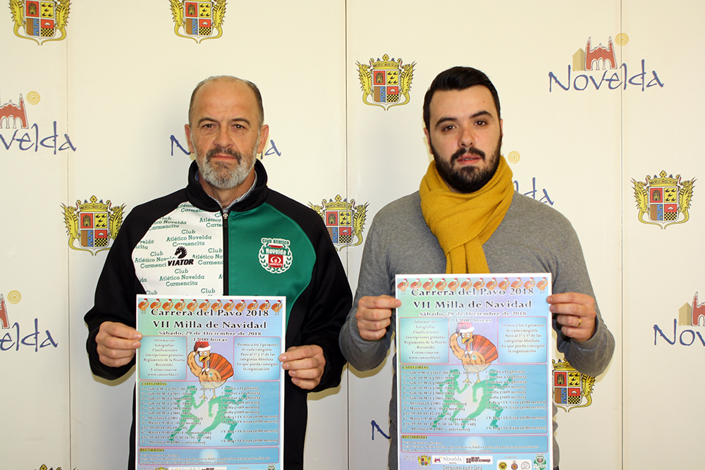 El sábado 29 de diciembre se celebrará una nueva edición de la popular Carrera del Pavo – VII Milla de Navidad. La prueba está organizada conjuntamente por las concejalías de Deportes y Fiestas, y el Club Atlético Novelda Carmencita que se encargará del control de carrera.