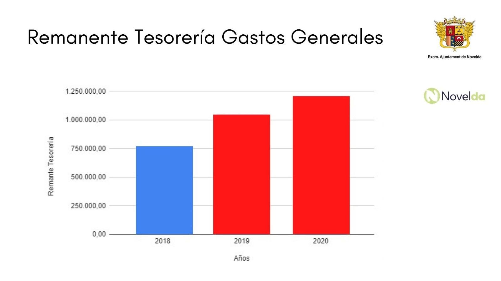 El superávit en las cuentas municipales, que ha evolucionado de forma notable desde los 765.000€ de remanente positivo de 2018 y los 1.047.0000€ de 2019, se ha conseguido, según Ñíguez, a pesar de la “enorme dificultad” que están suponiendo las consecuencias económicas y sociales derivadas de la crisis sanitaria que, además de mermar los ingresos municipales por las dificultades que muchos ciudadanos tienen para hacer frente a sus impuestos, ha obligado a destinar más de 500.000 euros a las iniciativas de reactivación e impulso económico a través del plan Reactivem Novelda, a ayudas sociales y a la puesta en marcha de protocolos de seguridad, prevención y desinfección.