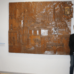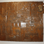 El Ayuntamiento de Novelda expone desde hoy el mural tallado en madera, obra del artista alicantino Remigio Soler, en el que se representa el edificio de la Casa Consistorial y otros monumentos del patrimonio local y que durante años decoró las oficinas de la antigua CAM en el municipio.