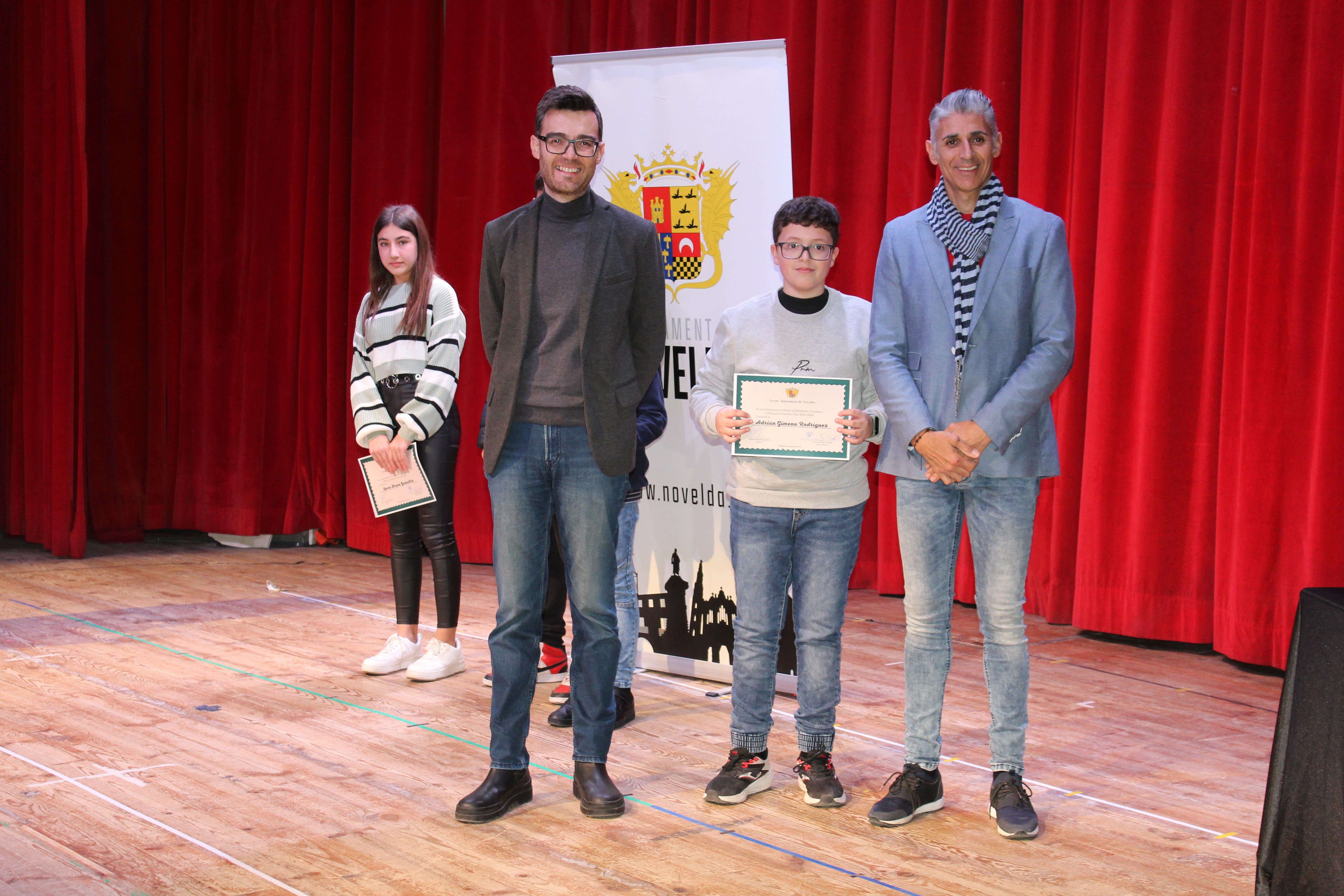 El Auditorio del Centro Cívico ha acogido el acto de entrega de los diplomas de reconocimiento por parte del Ayuntamiento de Novelda al alumnado distinguido con el premio al Rendimiento Académico concedido en los cursos 2020/2021 y 2021/2022 por la Conselleria de Educación, un acto en el que se ha reconocido públicamente a los cuarenta y tres alumnos noveldenses, treinta y uno de Educación Primaria y doce de Secundaria, destacados por la Generalitat Valenciana en los dos últimos curso académicos