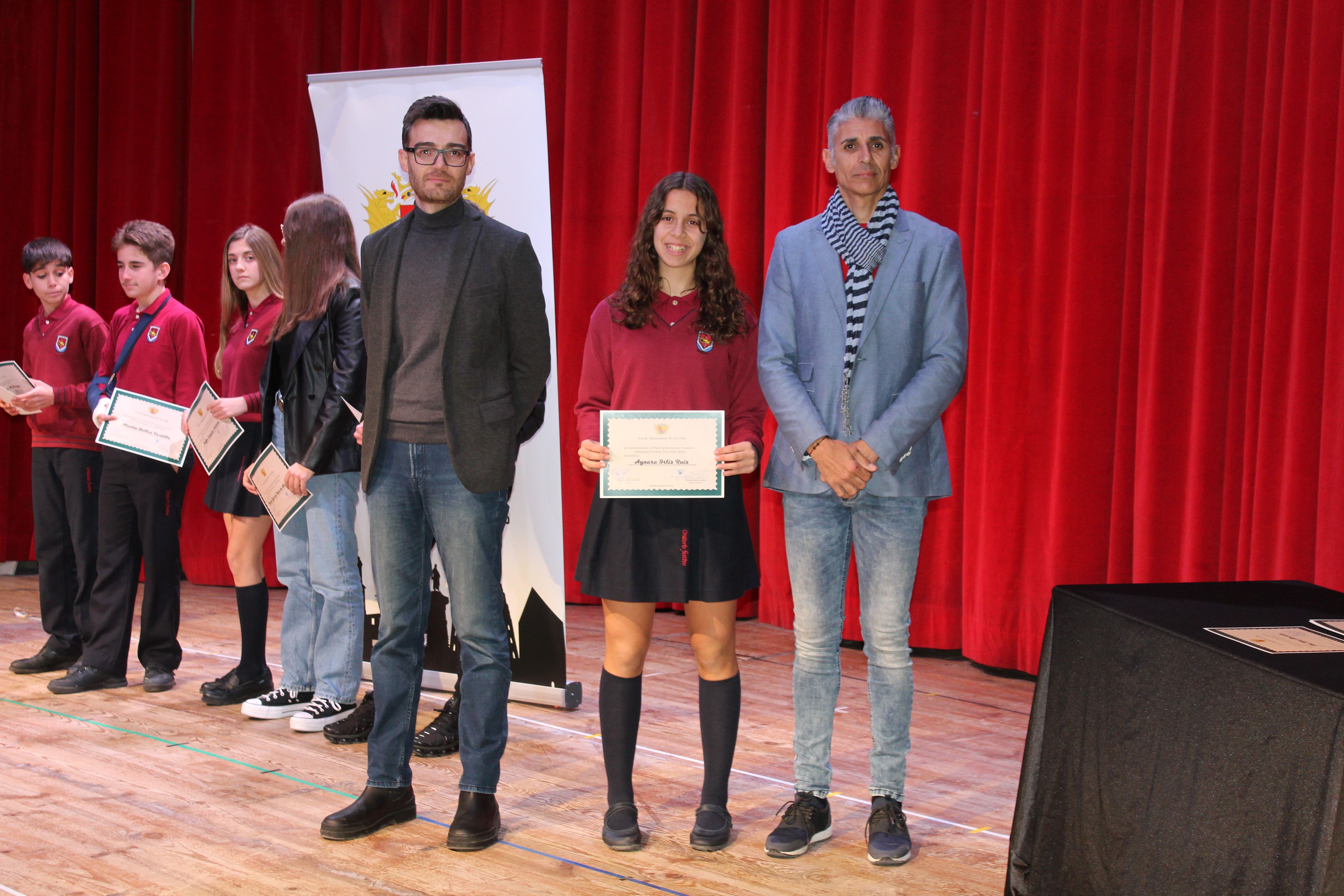 En Secundaria los premiados han sido Luis Álvarez Mira, Claudia Canales Mateu, Inés Jiménez Albert y Sara Navarro Ibarra de San José de Cluny; Arnau Palomares Antón, Víctor Cremades Sarrión del IES Vinalopó: Antonio Álvarez Belda y Yolanda Llobregat Navarro del IES La Mola; Nuria García Ruiz de Alarcón y Saúl Martínez Sanz del Oratorio Festivo y Míriam Ibáñez Navarro y Patricia Ruiz Ayala del Padre Dehon.