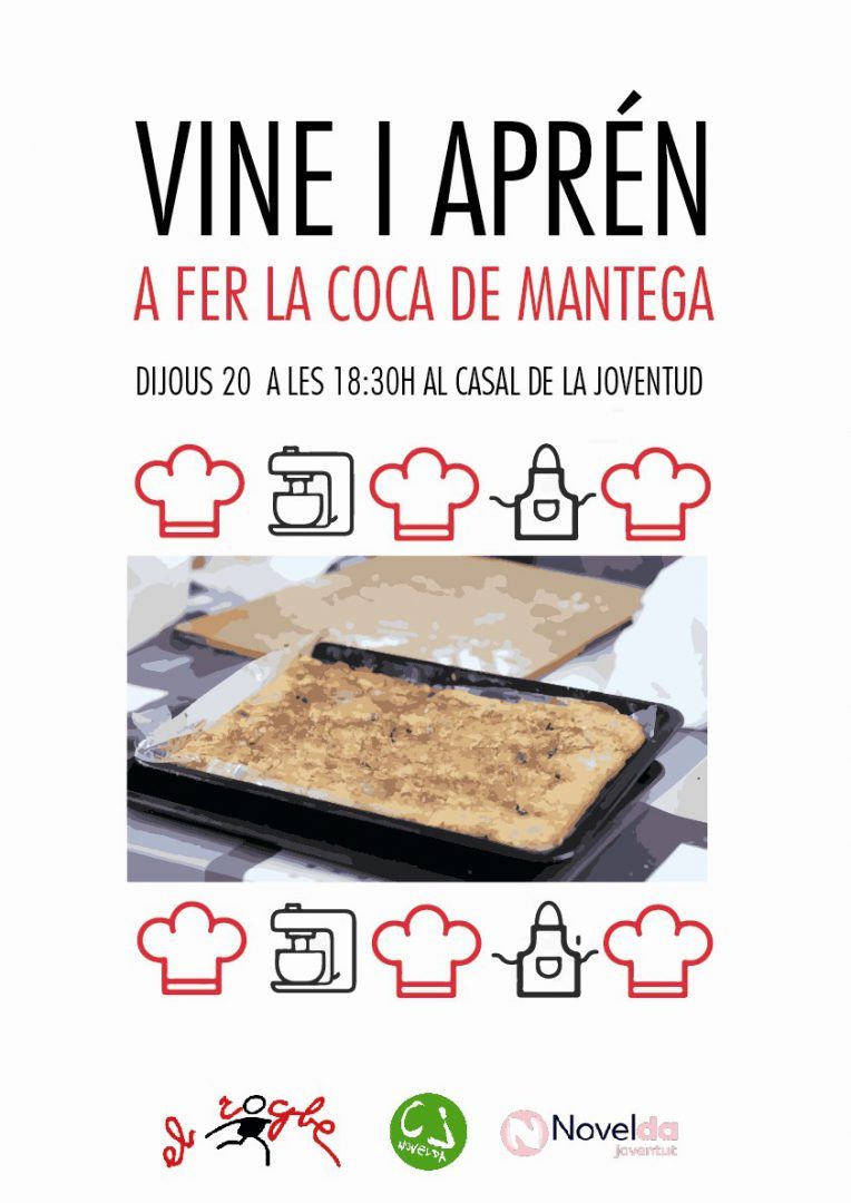 El Casal de la Joventut acoge, el próximo jueves 20 de febrero, a las 18:30h, un taller de cocina para la elaboración de Coca de Manteca, una actividad gratuita y abierta para todos los públicos organizada por la Asocicación Cultural “El Rogle”, con la colaboración del Consell de la Joventut y la concejalía de Juventud.