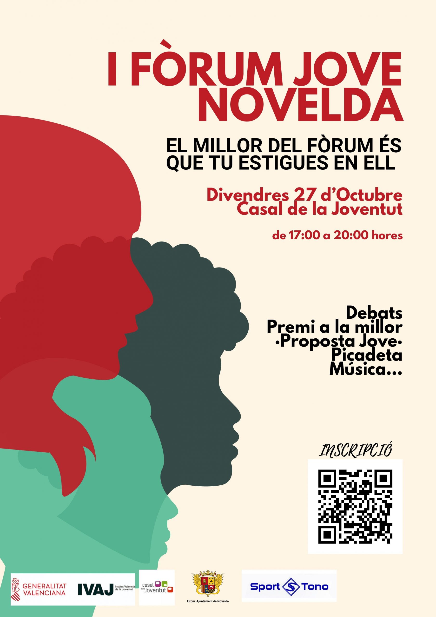 El Casal de la Juventud acoge mañana viernes, 27 de octubre, de 17:00h a 20:00h, la primera edición del Foro Joven Municipal de Novelda, un espacio de debate dirigido a jóvenes de entre 12 y 30 años que, enmarcado en los trabajos de redacción y desarrollo del Plan Joven Municipal, pretende recoger todas las propuestas de la población juvenil que puedan ayudar a mejorar la realidad del municipio.