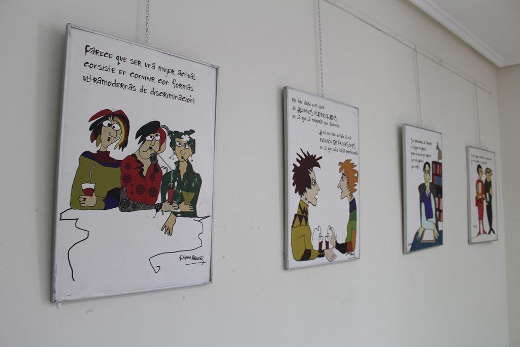 El Centro Cultural Gómez-Tortosa acoge, hasta el próximo 16 de marzo, la exposición Lenguaje para la Igualdad. No existe, una muestra de treinta viñetas, cedida por la Universidad de Alicante, de la dramaturga y dibujante argentina Diana Raznovich en la que se representa, en clave de humor, la realidad social de las mujeres.