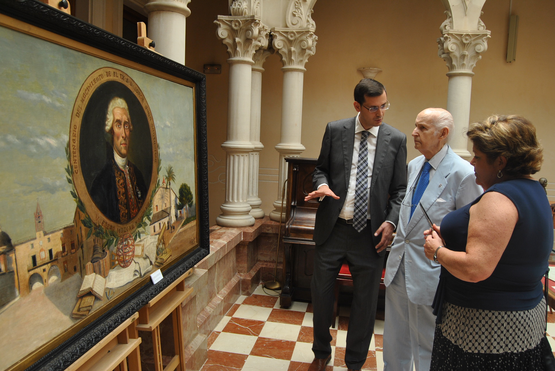 Grisolía, acompañado por varios miembros del Consell de Cultura, ha llegado a las doce de la mañana y tras descubrir la placa conmemorativa con la que esta prestigiosa institución pública de la Comunidad Valenciana se suma a los homenajes a Jorge Juan, ha firmado ene l libro de honor y con posterioridad ha visitado una exposición sobre el que fue conocido como “El sabio español”.