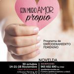 Bajo el lema “Con mucho amor propio”, la primera propuesta, que forma parte del programa de empoderamiento femenino de la Diputación Provincial, será impartida por Silvia Adriasola y se desarrollará los días 30 de octubre y 14, 21 y 28 de noviembre, de 09:30h a dos de la tarde.