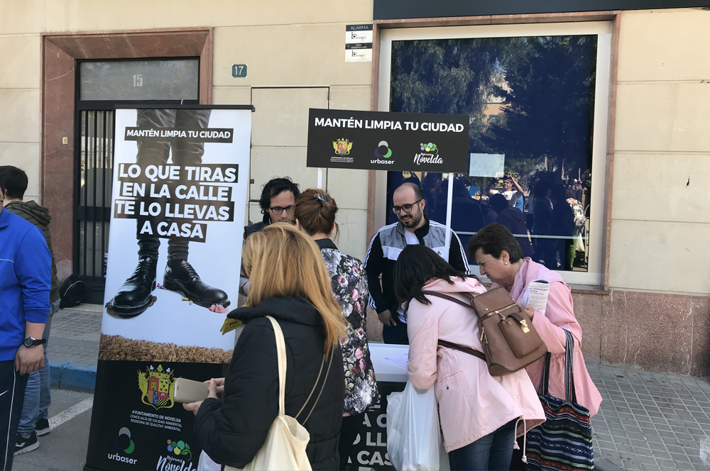 La campaña Lo que tiras en la calle te lo llevas a casa, puesta en marcha el pasado mes de abril por el departamento de Calidad Ambiental a través de la empresa concesionaria del servicio público de limpieza urbana y recogida de residuos de Novelda, URBASER, continuará hasta mediados mayo con el objetivo de concienciar a la población sobre la necesidad de mantener limpias las vías públicas y potenciar el reciclaje.