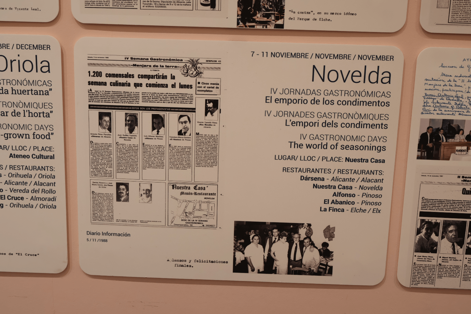 La exposición, que ha contado en el acto inaugural con la presencia del alcalde de Novelda, Fran Martínez, el presidente y consejero delegado de Carmencita, Jesus Navarro Navarro, el director de la Cátedra, Josep Bernabeu, y el presidente de Fundación Mediterráneo, Luis Manuel Boyer, lleva a cabo una retrospectiva, a través de los archivos personales del reportero alicantino, impulsor de la serie de artículos “Menjars de la Terra” y de la realización de diferentes encuentros gastronómicos provinciales.