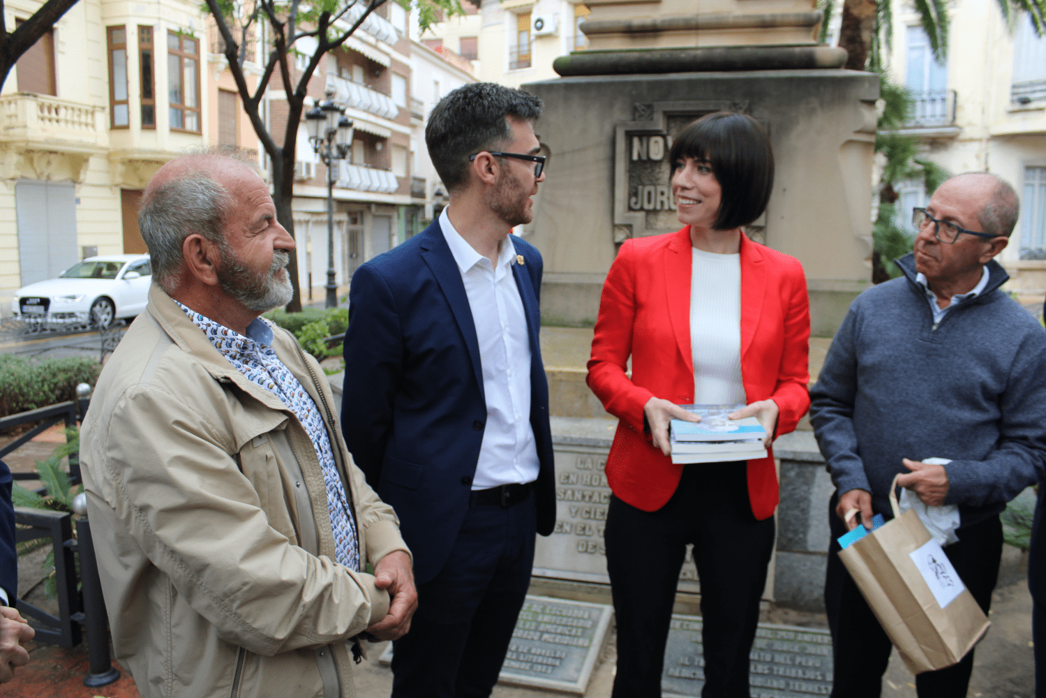El alcalde de Novelda, Fran Martínez, acompañado por el equipo de gobierno recibía a las puertas del Ayuntamiento, el pasado viernes, a la Ministra de Ciencia e Innovación, Diana Morant, que también mantuvo un breve encuentro con representantes de la comisión organizadora de los actos del 250 aniversario de la muerte del ilustre marino y científico Jorge Juan y Santacilia.