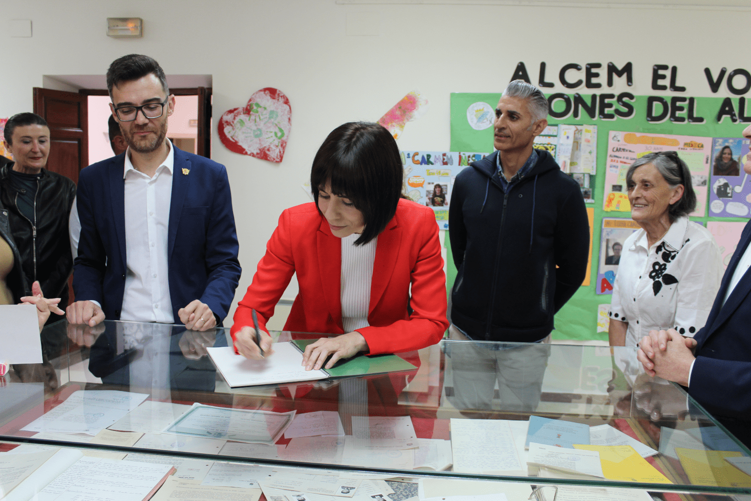 Diana Morant aprovechó su estancia, tras visitar la exposición del 50 aniversario del colegio Alfonso X El Sabio, para poner de relieve el recuerdo que Novelda tributa a sus “raíces científicas y basa en ése conocimiento su transformación y su forma de caminar hacia el futuro”. En este sentido la Ministra recordó que Novelda tiene reconocido su trabajo de divulgación científica a través del programa “Ciudad Ciencia”, puesto en marcha por el Consejo Superior de Investigaciones Científica (CSIC), cuyo principal objetivo es acercar a la ciudadanía, de manera sencilla y amena, la importancia de la ciencia y la tecnología para el avance del conocimiento y el desarrollo económico, social y cultural.