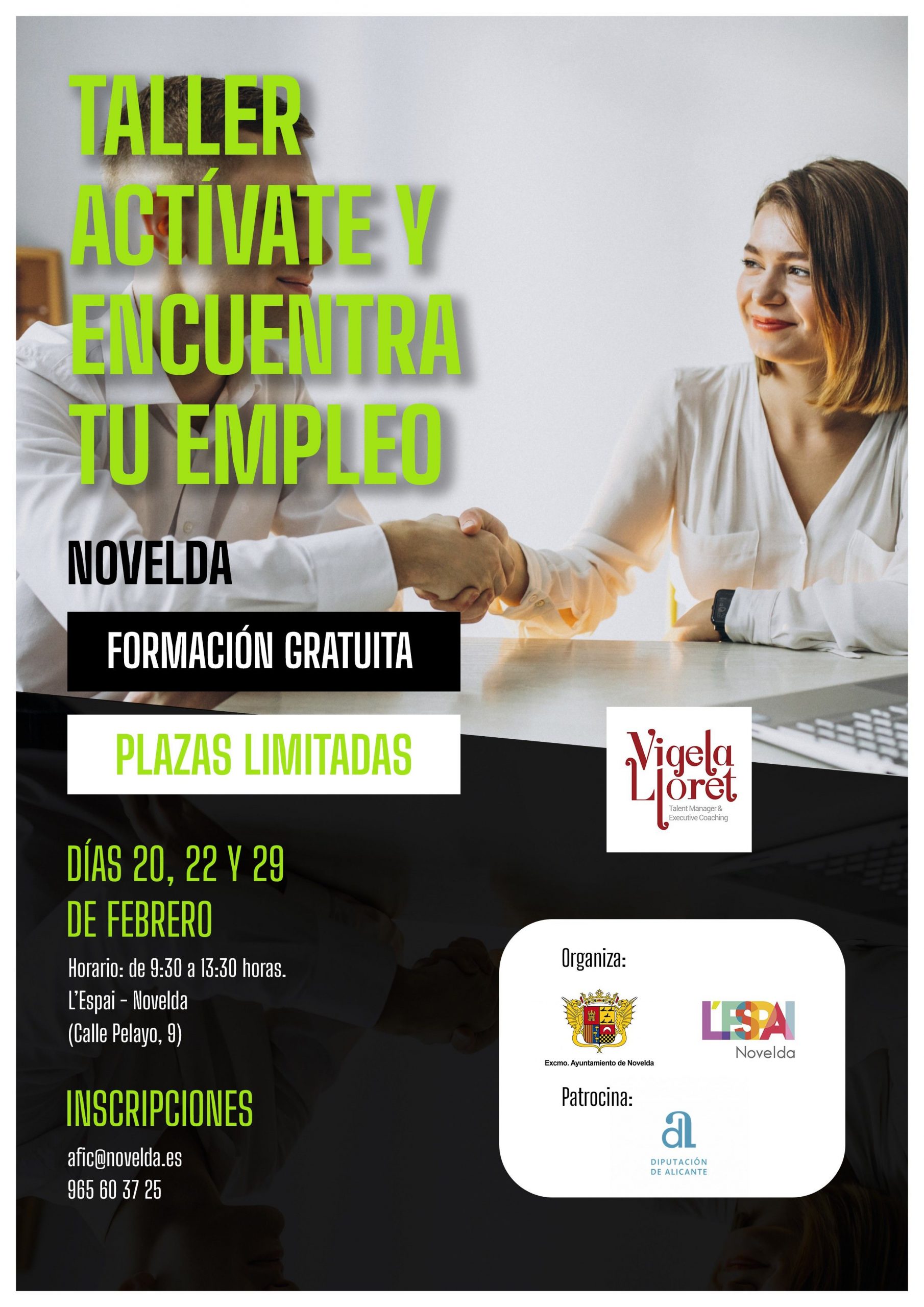 Las instalaciones de L’Espai acogerán el taller “Actívate y Encuentra tu Empleo”, una formación gratuita que, financiada a través de la línea de ayudas de la Diputación Provincial de Alicante destinadas al desarrollo económico y los sectores productivos, tiene como objetivo mejorar la búsqueda activa de empleo.