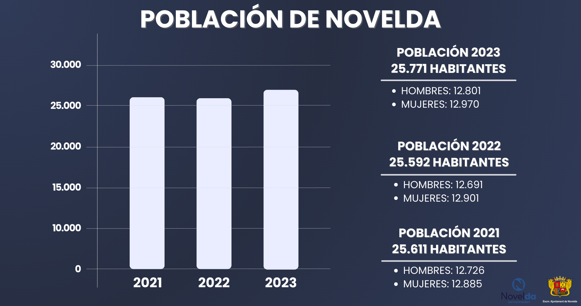 Martínez ha señalado que, tras la pandemia del Covid, con la vuelta a la normalidad, “hemos logrado consolidar una tendencia que confirma que las personas quieren vivir en Novelda, una noticia que refuerza el trabajo del equipo de gobierno para mejorar los servicios a la ciudadanía y buscar que el talento y la inversión foráneas decidan quedarse en la localidad”.