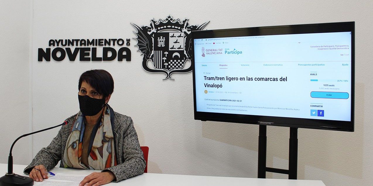 El proyecto para la puesta en marcha del tren ligero entre las localidades de la comarca del Vinalopó, del que se beneficiarían un total de 413.879 habitantes de los municipios de Santa Pola, Elche, Aspe, Novelda, Monóvar, Elda y Petrer, necesita del apoyo de la ciudadanía, que puede aportar su adhesión a la iniciativa, a través de la plataforma Participa GVA, para que se convierta en una realidad.