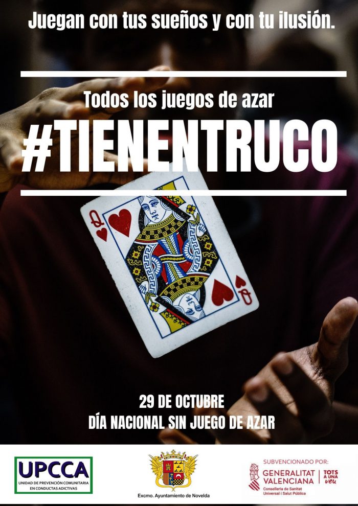 El Ayuntamiento de Novelda, a través de la concejalía de Salud, se ha adherido, con motivo del Día Nacional sin Juegos de Azar, el próximo 29 de octubre, al proyecto “Todos los juegos de azar #TienenTruco”, una campaña de concienciación que han lanzado las Unidades de Prevención Comunitaria en Conductas Adictivas de la Comunitat Valenciana …