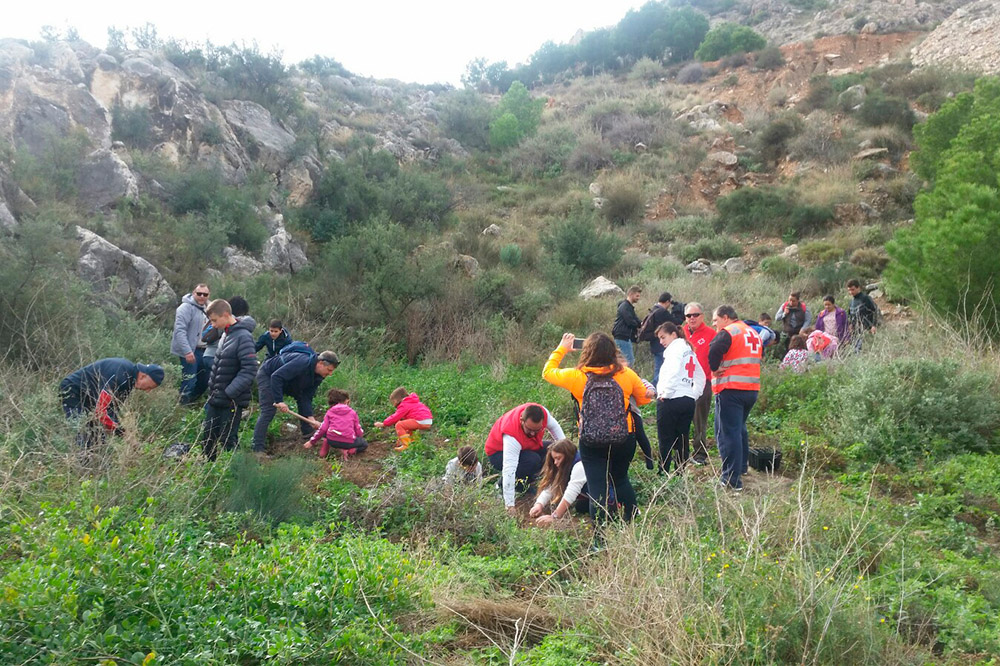 Alrededor de un centenar de voluntarios, muchos de ellos en familia, participó el pasado domingo, 18 de noviembre, en la jornada de reforestación popular que organizó la Concejalía de Calidad Ambiental y la asociación Festival Natura en colaboración con Protección Civil, que supervisó la actividad.