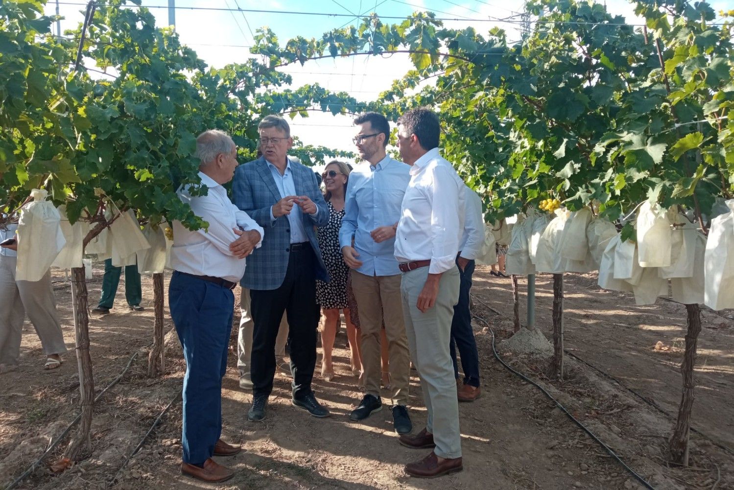 El President de la Generalitat, Ximo Puig, acompañado por la consellera de Agricultura, Desarrollo Rural y Cambio Climático, Mireia Mollà, el presidente de la Diputación Provincial de Alicante, Carlos Mazón, la Subdelegada del Gobierno, Araceli Poblador y los alcaldes de los municipios amparados por la Denominación de Origen Uva de Mesa Embolsada del Vinalopó, han acompañado al Presidente del Consejo Regulador, José Bernabeu, en el corte simbólico del primer racimo al que ha seguido el acto institucional desarrollado en el auditorio del Centro Cívico Social, con el que se da el pistoletazo de salida a la campaña de comercialización del producto agrícola más emblemático del Valle del Vinalopó.