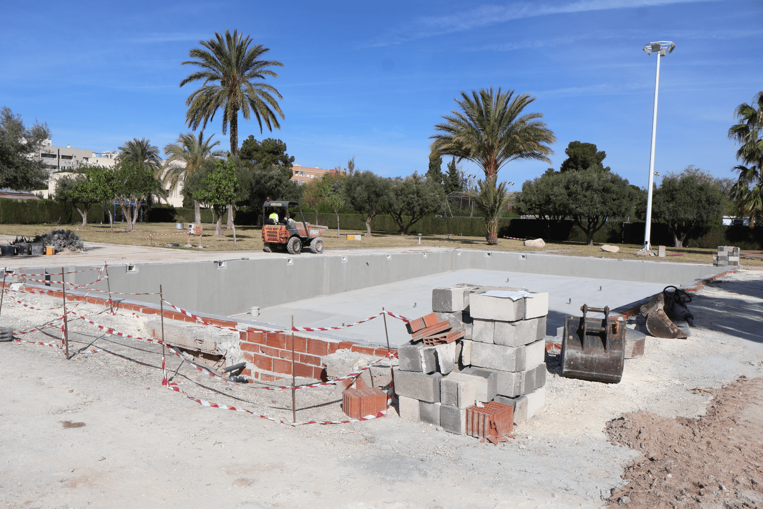 La reforma, que se tiene prevista que pueda estar acabada para el inicio del periodo estival, afronta tras la finalización de los trabajos integrales de adecuación, en los que se han realizado labores de movimiento de tierras y demolición, la adecuación de la estructura al proyecto, la ejecución de la caseta de depuración y filtrado, la instalación del sistema de riego, agua potable y alumbrado y la canalización de las aguas residuales, una nueva fase centrada en la formación de la piscina infantil y la zona de juegos de agua, la colocación de pérgolas de sombraje y velas y la coronación de los vasos de las piscinas.