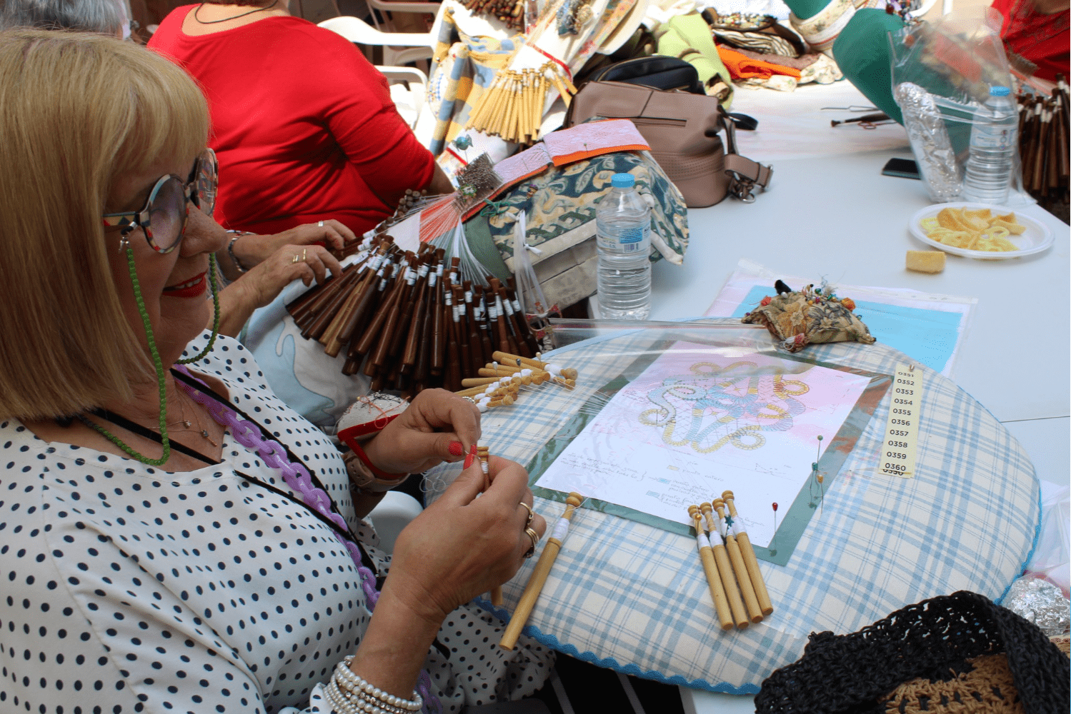 Raderas llegadas desde diferentes municipios, junto a las artesanas locales, llenaron con el sonido de sus bolillos, sus cojinetes, hilos, agujas y maestría la Plaça Vella en una jornada de convivencia organizada por al asociación Sóc Randera, en colaboración con Randeras L’Illa y la concejalía de Turismo.