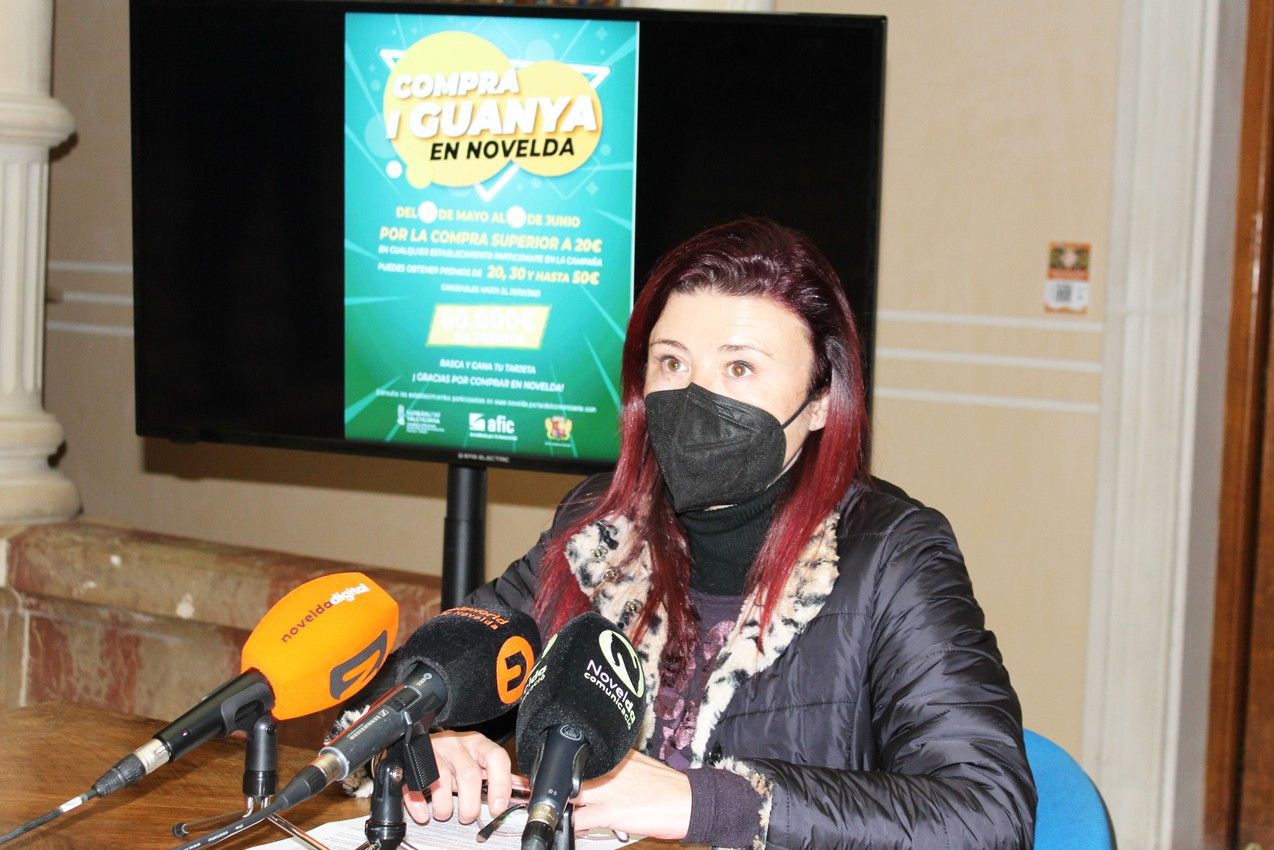 La concejala de Comercio, Consumo y Mercado, Paqui Beltrá, ha presentado la nueva edición de Compra i Guanya, una campaña que se estrenó el pasado octubre con el objetivo de potenciar y fomentar el consumo local, reactivando el sector comercial y hostelero de la ciudad, que se enmarca en el plan Reactivem Novelda, concebido para estimular la economía local ante las consecuencias derivadas de la crisis provocada por la Covid-19.