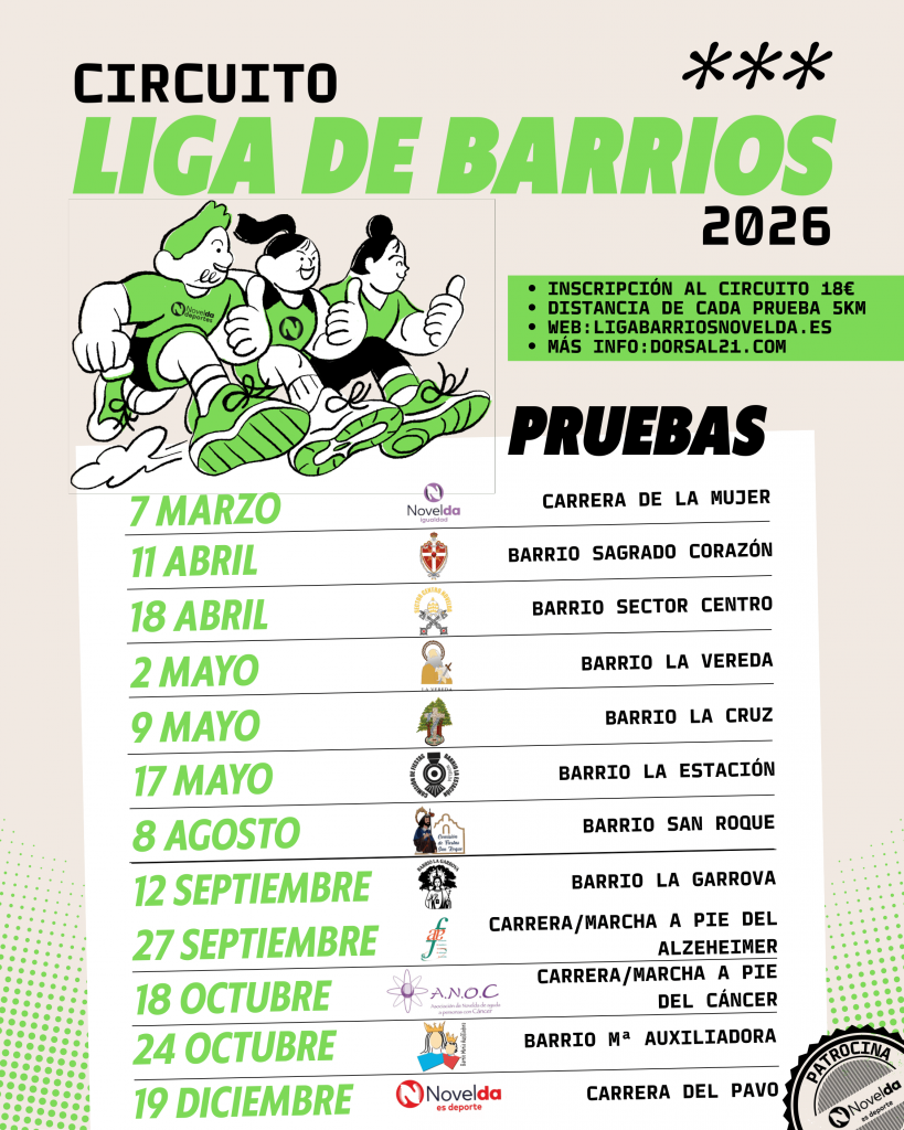 La concejalía de Deportes ha presentado una nueva edición de la Liga de Barrios de Atletismo de Novelda, un circuito de carreras populares plenamente consolidado dentro del calendario deportivo local, que continúa creciendo en participación y en impacto social.