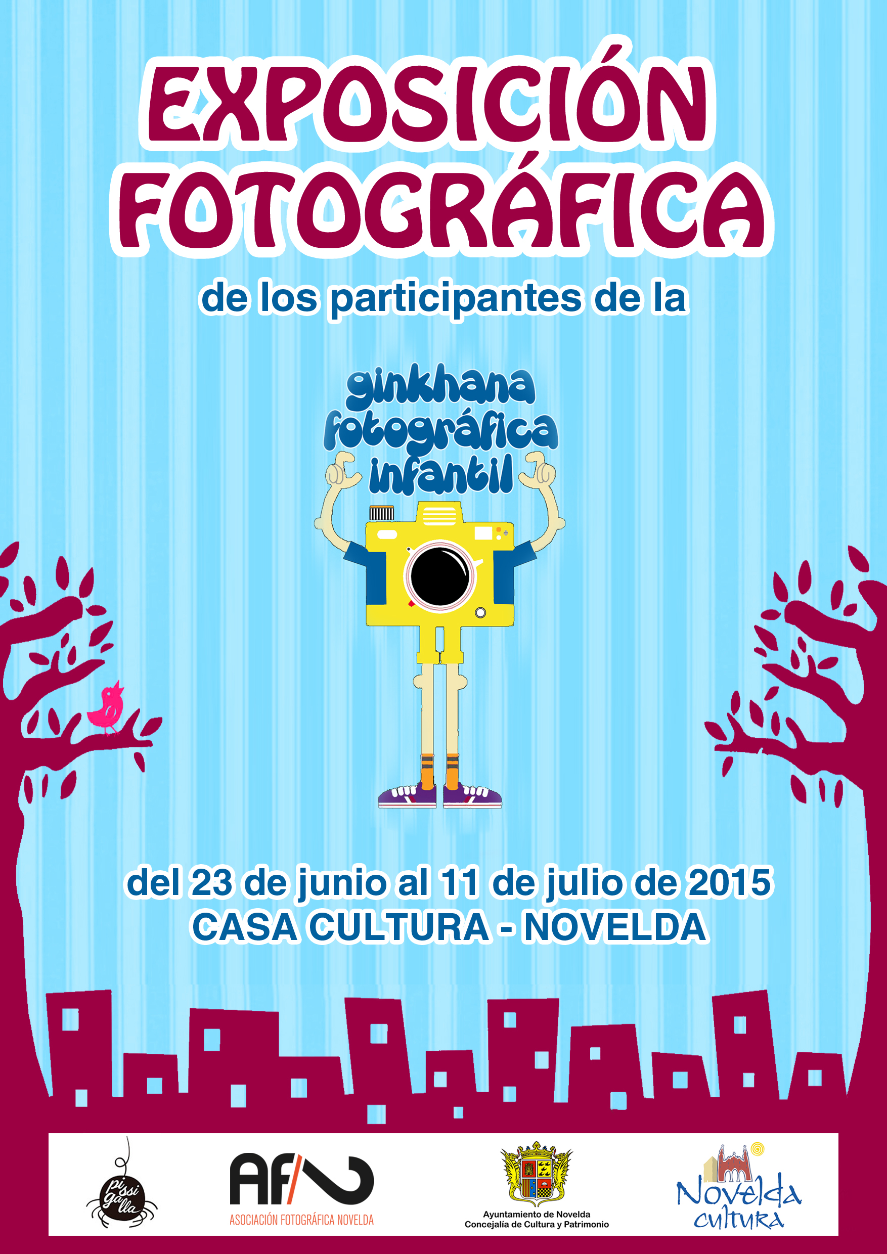 2015-06-23 EXPO GINKANA FOTOGRAFICA INFANTILDel 23 de junio al 11 de lulio, en la Casa de Cultura. Exposición fotografica de los participantes de la ginkana infantil. Organiza: Asociación Infantil Pissigalla y Asociación Fotográfica de Novelda. Horario de visitas: de lunes a viernes de 10 a 14 h. y de 17 a 21’30 h.; sábados de 10 a 14 h.