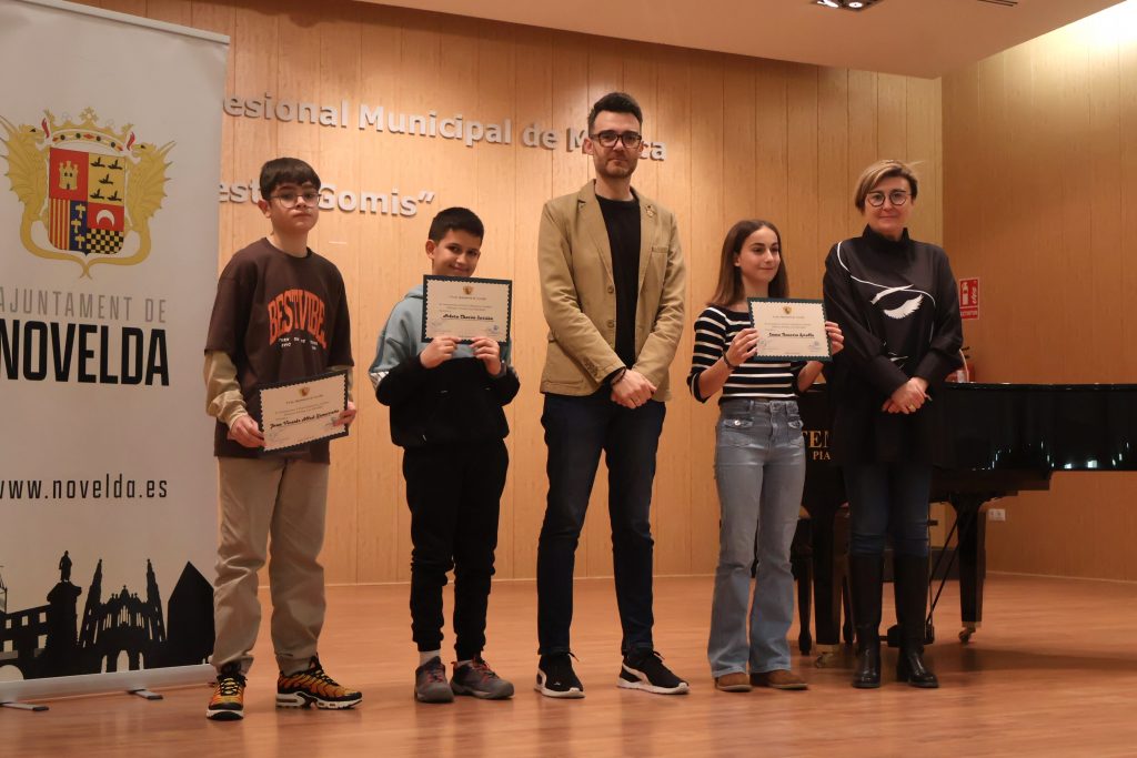 L’Auditori del Conservatori de Música Mestre Gomis ha acollit l’acte de lliurament dels diplomes de reconeixement, per part de l’Ajuntament de Novelda, a l’alumnat dels centres educatius de la ciutat distingit amb el Premi Extraordinari al Rendiment Acadèmic concedit per la Conselleria d’Educació, Cultura, Universitats i Ocupació corresponent al curs 2024-2025.