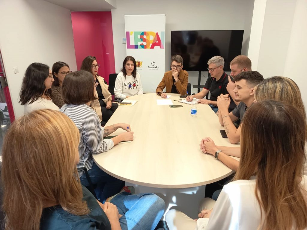 L’alcalde de Novelda, Fran Martínez, ha mantingut una trobada amb els usuaris de l’espai de cotreball municipal situat en les instal·lacions de L’Espai, amb l’objectiu de conéixer de primera mà els projectes en els quals estan treballant jóvens emprenedors i nòmades digitals que han triat este entorn per a desenrotllar les seues idees empresarials, així com les necessitats i possibles millores que es podrien implementar en l’espai de treball que va obrir les seues portes al públic fa uns mesos.