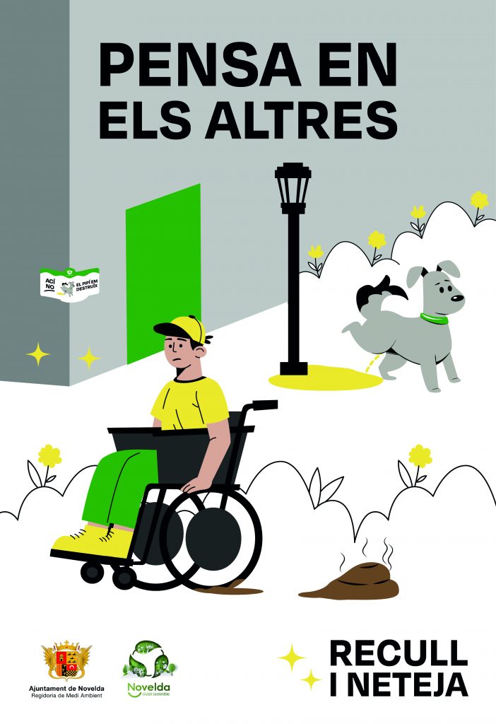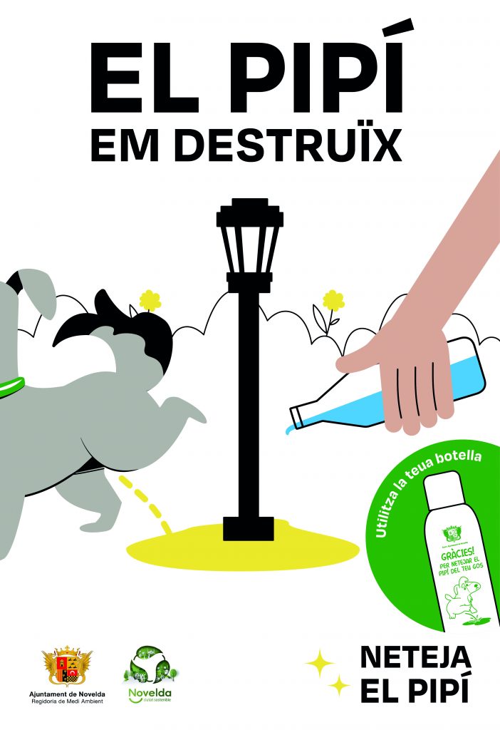 La iniciativa també serà present en la cartelleria dels opis municipals i als carrers de Novelda a través de la labor informativa de les educadores ambientals, que distribuirà material informatiu, kits de bosses per a la recollida d’excrements i botelles emplenables per a la neteja dels orins.