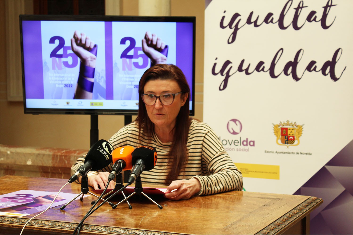 La concejala de Igualdad, Paqui Beltrá, ha presentado el programa de actividades organizado por su departamento, en colaboración con los centros educativos de Novelda, el Colectivo Belladona, la Biblioteca Municipal, el Centro Público de Formación de Personas Mayores L’Illa dels Garroferets, el Secretariado Diocesano de Migración de Orihuela-Alicante y el CEIP Jorge Juan, con motivo de la celebración del Día Contra la Violencia Machista, un programa que se desarrollará entre el 10 y el 27 de noviembre en los centros educativos, en L’Illa dels Garroferets, la Casa de Cultura y el Centro Cívico y que tendrá como acto central la tradicional lectura del manifiesto el 25 de noviembre, a las 12:00h, en los soportales del Ayuntamiento.