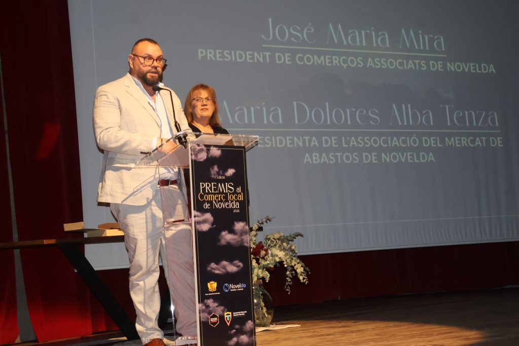 Després del lliurament dels guardons el president de Comerços Associats de Novelda, Chema Mira, acompanyat per la vicepresidenta de l’Associació Mercat de Proveïments de Novelda, M.ª Dolores Alba Tenza, va tindre paraules d’agraïment i reconeixement per al comerç i el mercat, posant en valor “la història, l’esforç diari, la il·lusió i la proximitat” del comerç de proximitat com un dels “grans motors” social i econòmic del municipi, al mateix temps que advocava pel relleu generacional en un sector que “crea oportunitats reals”.