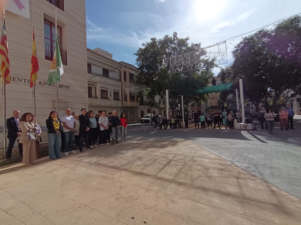Novelda ha guardat este matí un minut de silenci a les portes de l’Ajuntament en memòria de les 229 víctimes mortals causades per la DANA que va assotar la Comunitat Valenciana l’any passat.
